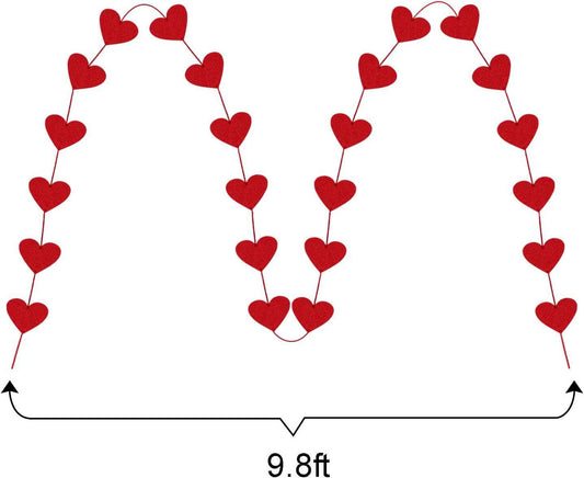 72 Red Hearts Felt Garland - NO DIY - Valentines Red Heart Hanging String Garland - Valentines Decor - Valentine Decorations - Valentines Wedding Anniversary Birthday Party Supplies