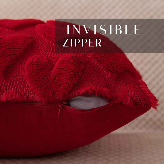 DFXSZ Valentines Pillow Covers 18x18 inch Set of 2 Valentines Day Decoration Red Heart Soft Plush Faux Fur Jacquard Throw Pillows for Bedroom Sofa Holiday Festivals Home Decor PTK017A18