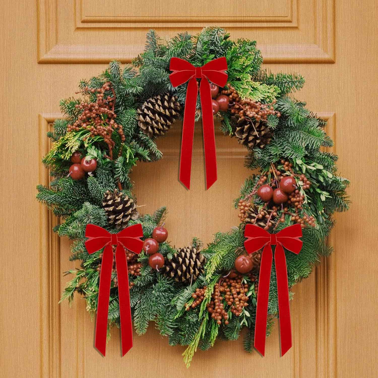 12Pcs Red Velvet Ribbon Bows Christmas Tree Decorations,5in x 10in Xmas Ornaments for Tree Home Party Front Door Wreath Holiday Decor