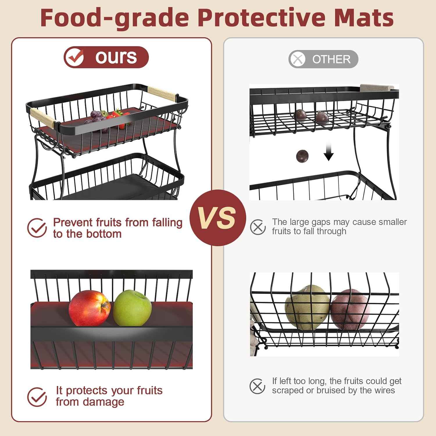 Equipped with a food-grade protective mats, this basket protects your countertop and keeps fruits stable, ensuring they stay fresh and undamaged.