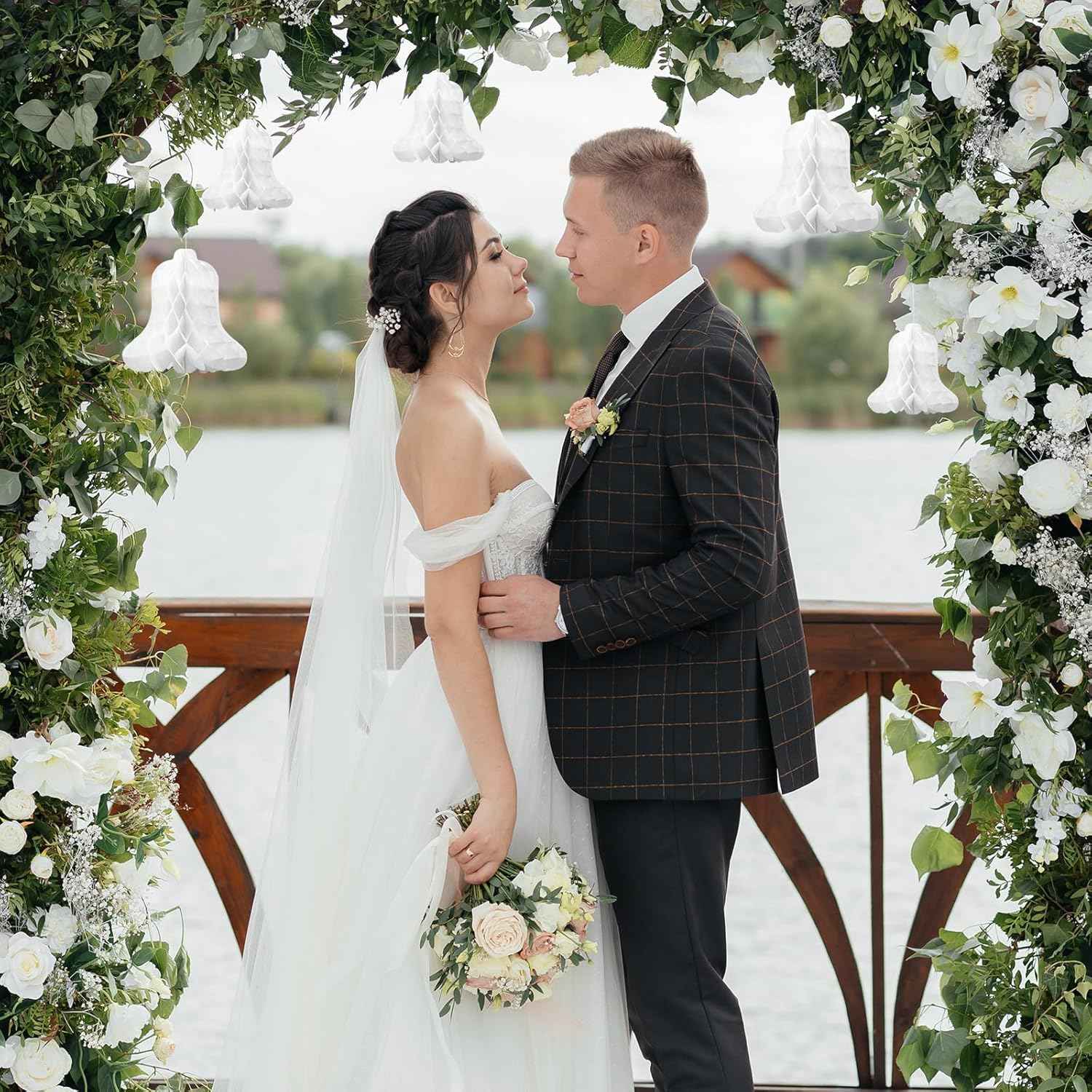 24 Pcs Paper Wedding Bells White Hanging Big Bridal Honeycomb Wedding Bells Decorations for Ceremony Parties Baby Showers Christmas Decorating Supplies, 7.9inch and 11.8inch