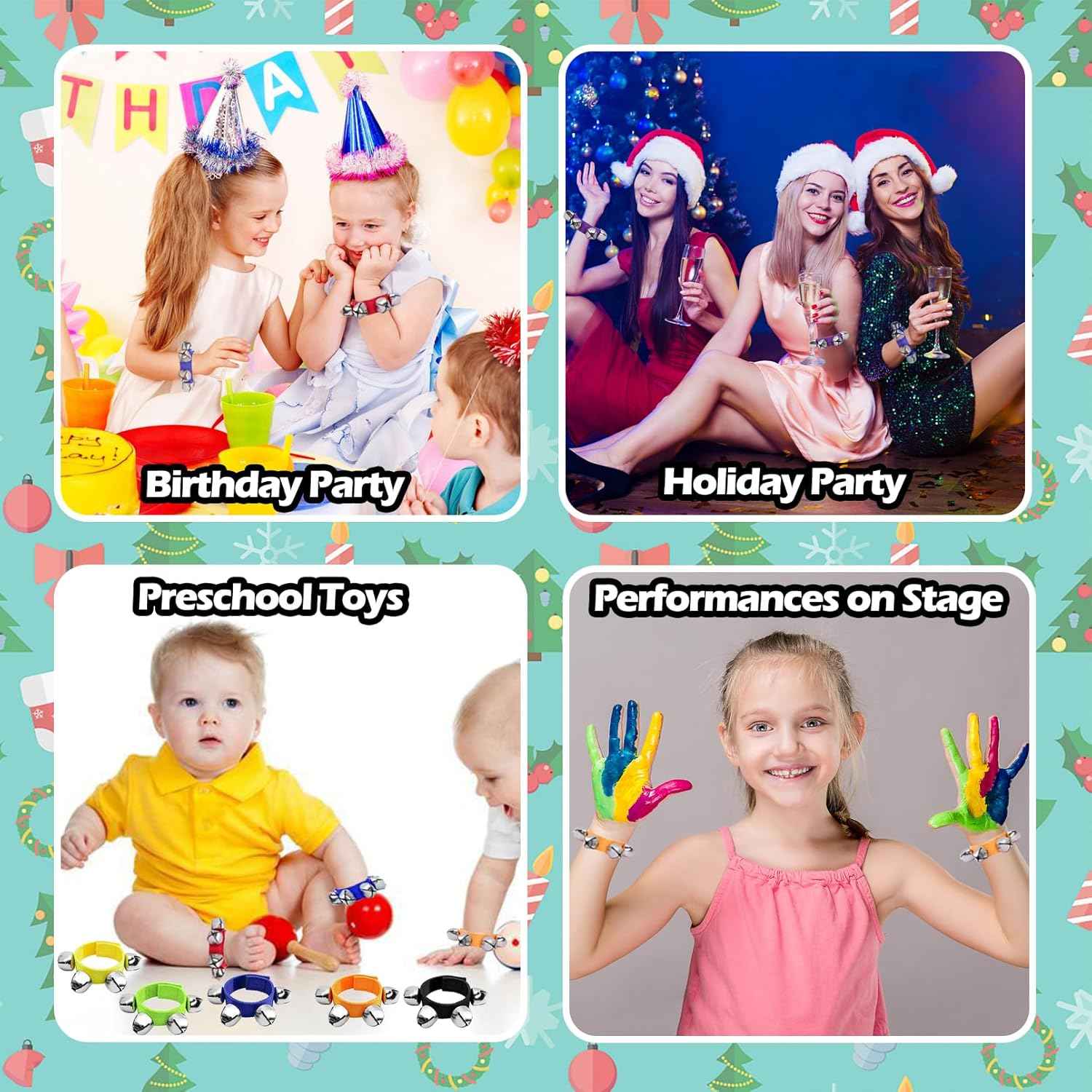 - 24 Pcs Wrist Band Jingle Bells,12 Colors Band Wrist Bells Ankle Bells,Adjustable Musical Hand Bells Jingle Bell Bracelets for Kids,Rhythm Instrument Percussion Christmas Party Favors