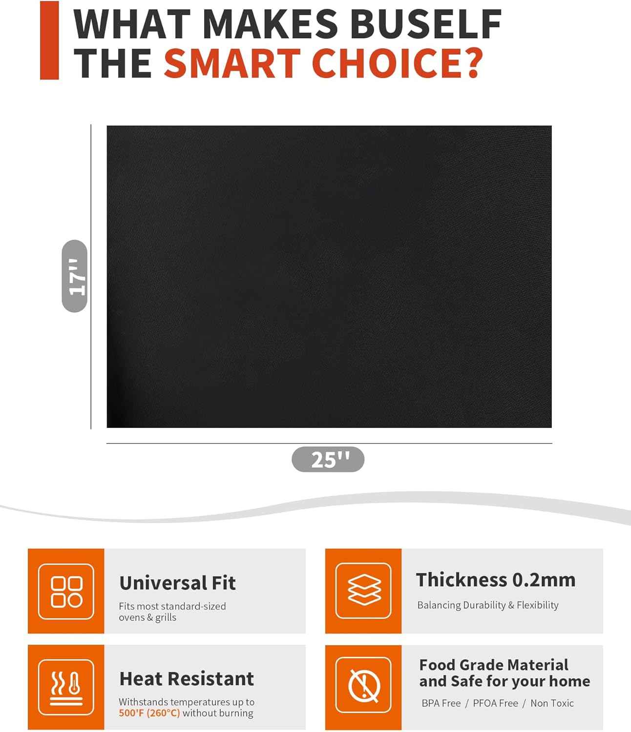 3 Pack Oven Liners for Bottom of Oven, 17x25" Large Heavy Duty Non-Stick Reusable Oven Mat for Electric, Gas, Toaster & Convection Ovens - BPA & PFOA Free, Dishwasher Safe, Kitchen Essentials, Black