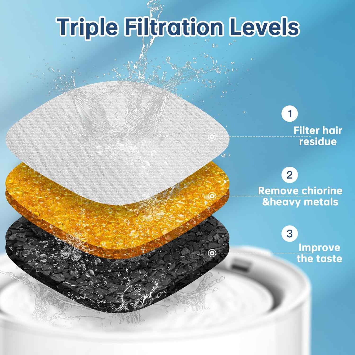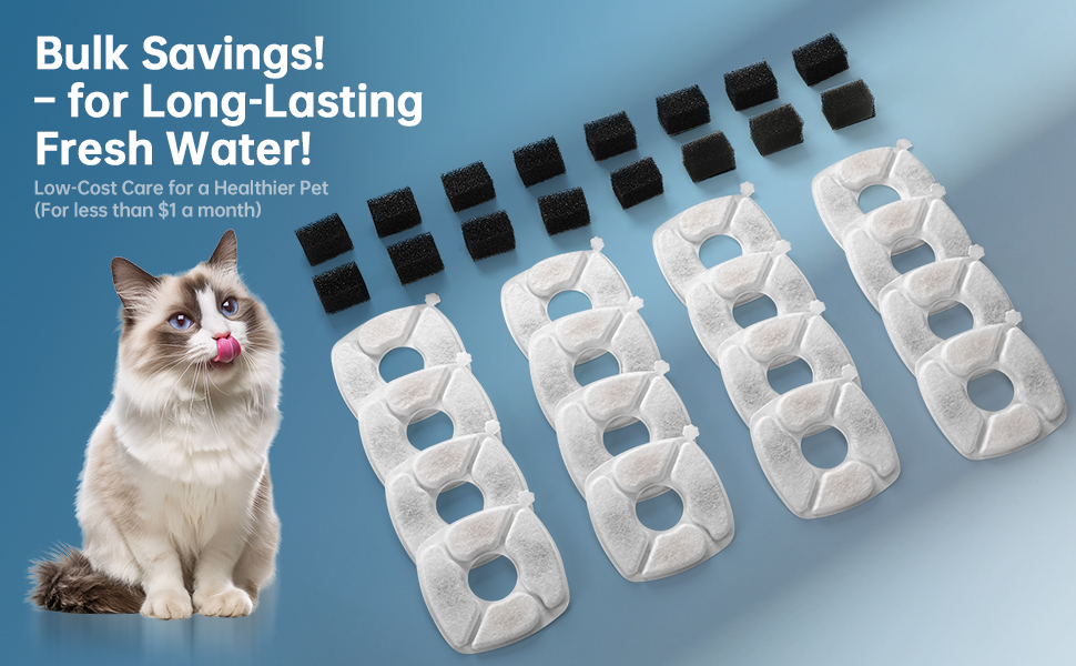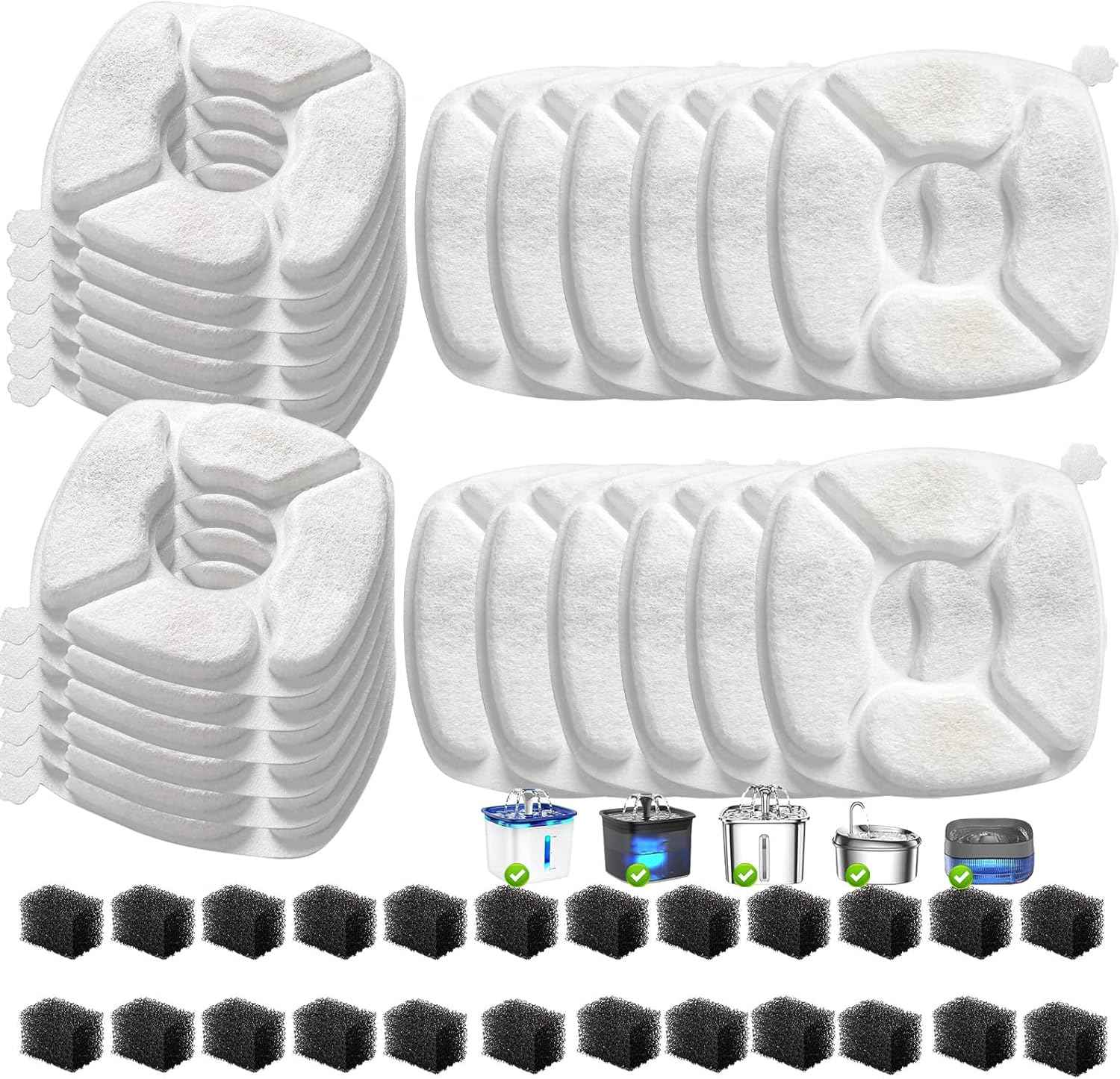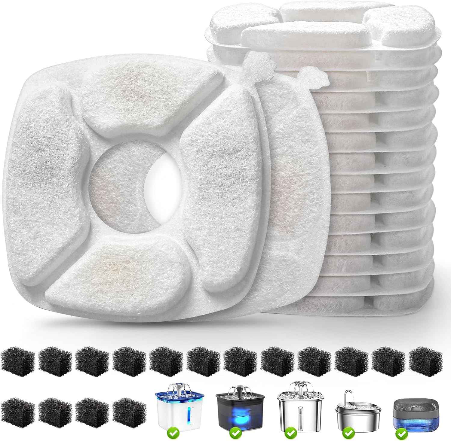 32 Pcs Cat Water Fountain Replacement Filters-16 Pack Cat Fountain Filters with 16 Pack Sponges, Enhanced Compatibility Pet Fountain Filter Fit for 95oz/2.8L 135oz/4L 67oz/2L Pet Drinking Fountain