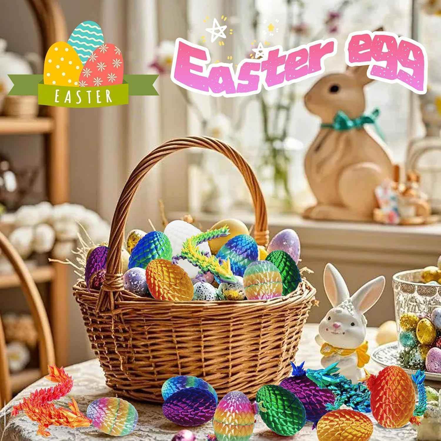 3D Printed Dragon Eggs with Dragon Inside – Fantasy Tabletop Decor, 3D Printing Toys for Kids & Adults – Unique Desktop Decoration & Collectible – Christmas Ornament & Stocking Stuffers (4 Pack)