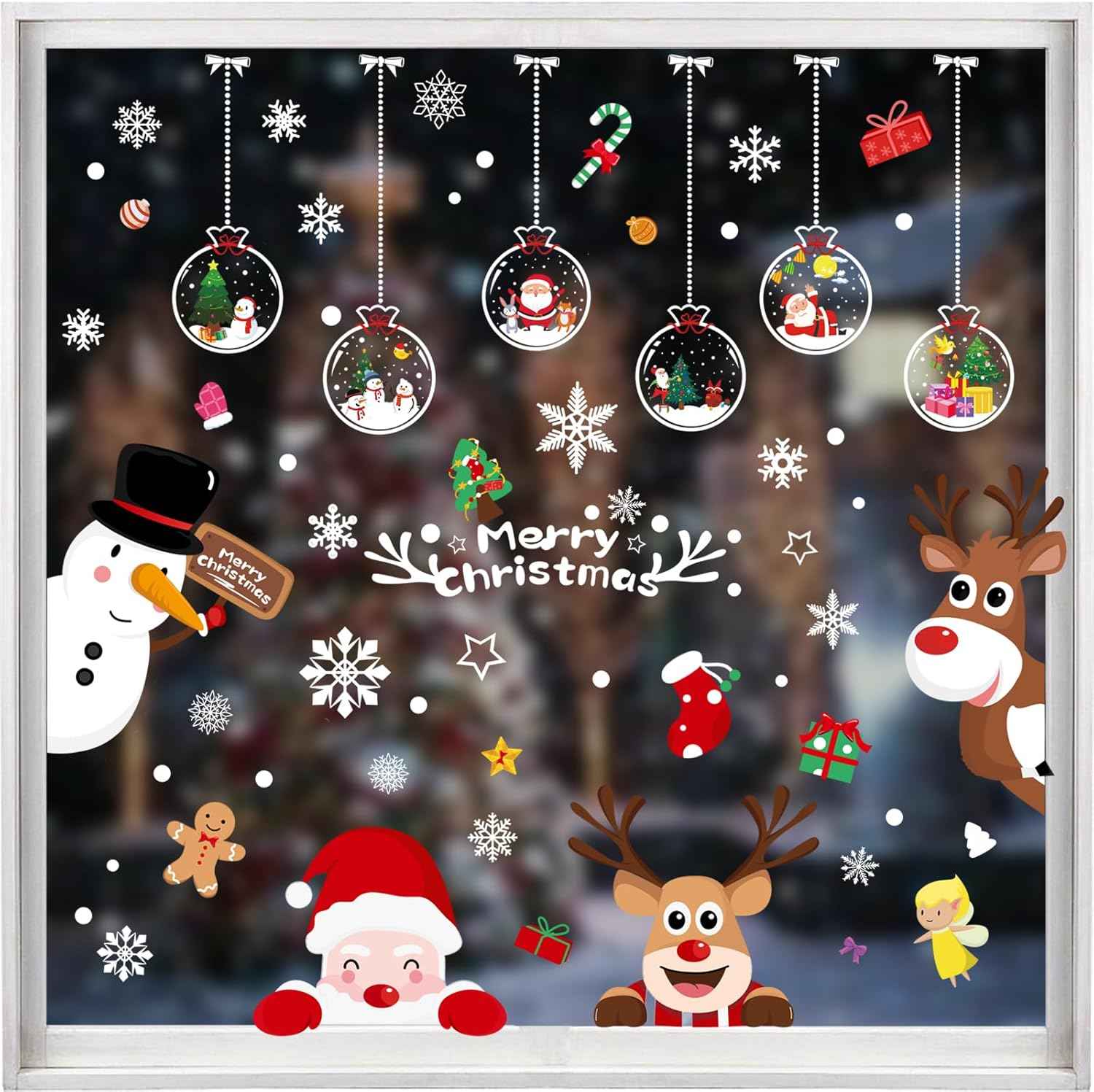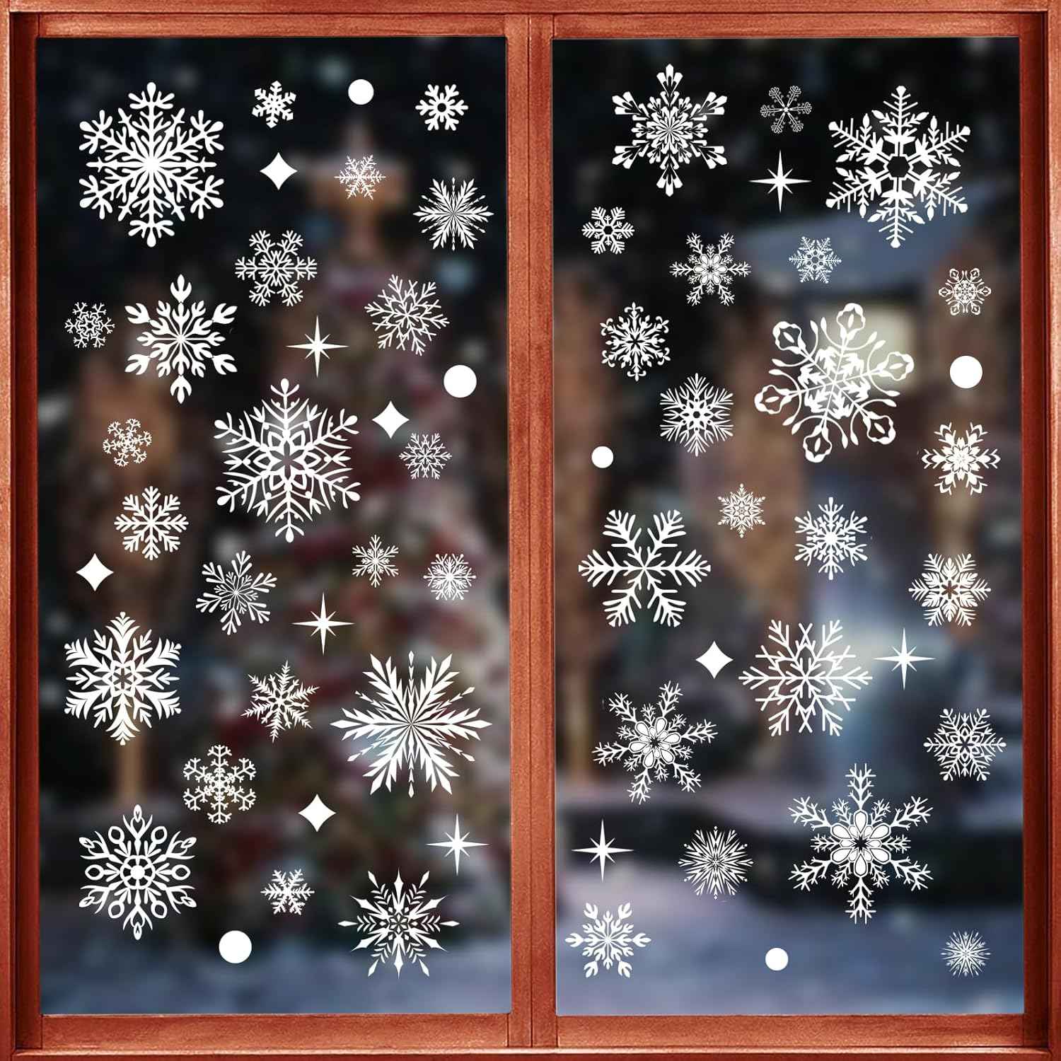 438Pcs Snowflake Window Cling Stickers for Christmas Decorations, 10 Sheets Christmas Window Clings of Different Shapes Xmas Decals for Glass Home Decor Indoor and Outdoor Party Supplies