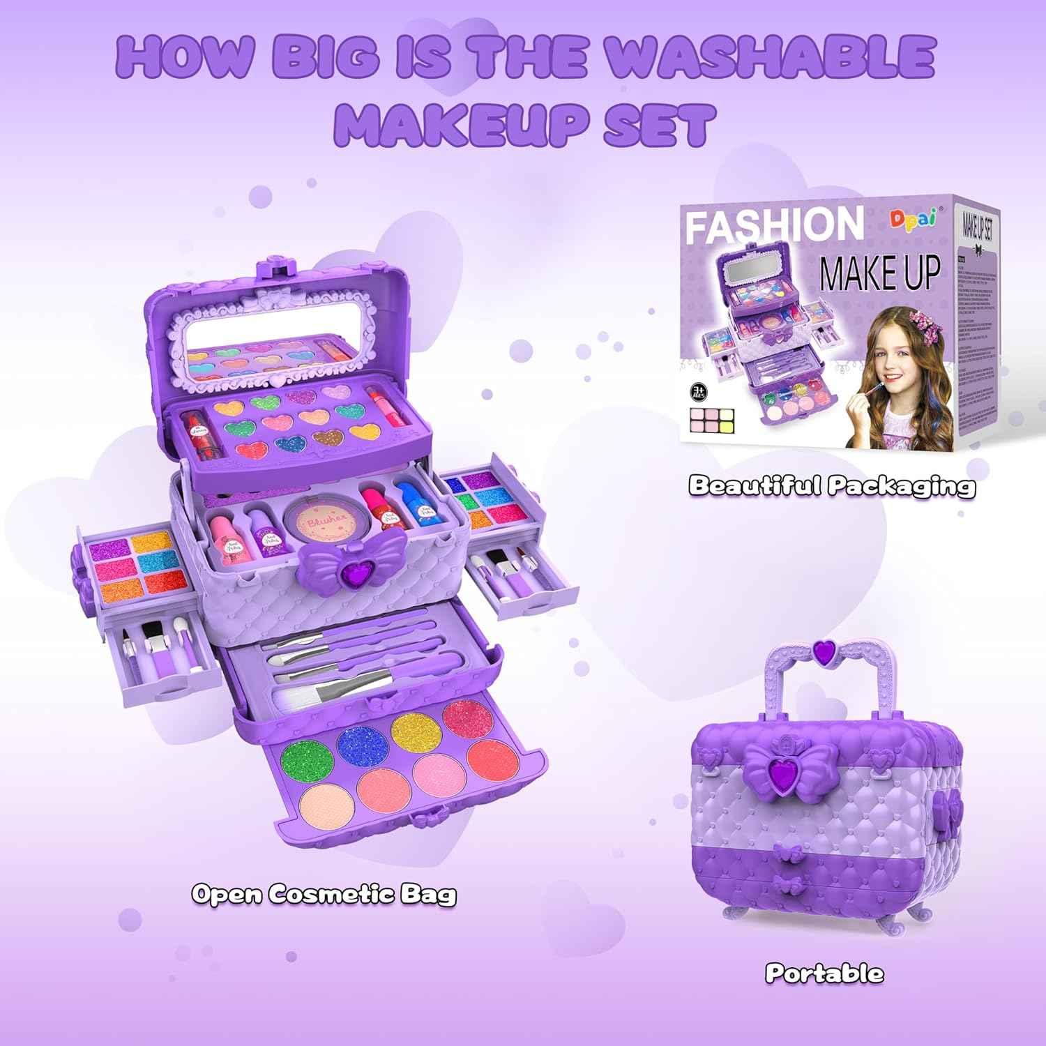 Non toxic makeup is suitable for the little girl's usual personal play, also suitable for playing with friends. This is a good choice for birthday, children's day, Halloween and Christmas as a gift for girls.