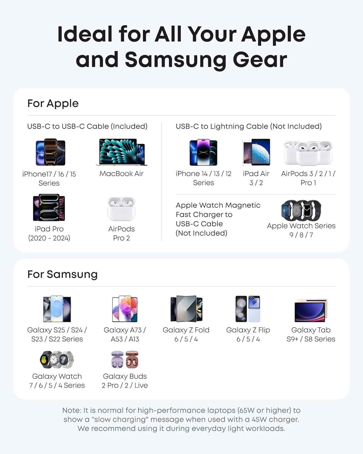 - Anker Nano Charger, 45W Fast Charging, Compact and Foldable Plug USB C Charger Block for iPhone 17 Series, MacBook, Pixel 9, iPad, Samsung Galaxy S25 Ultra / S24 Series (6 ft Cable Included)