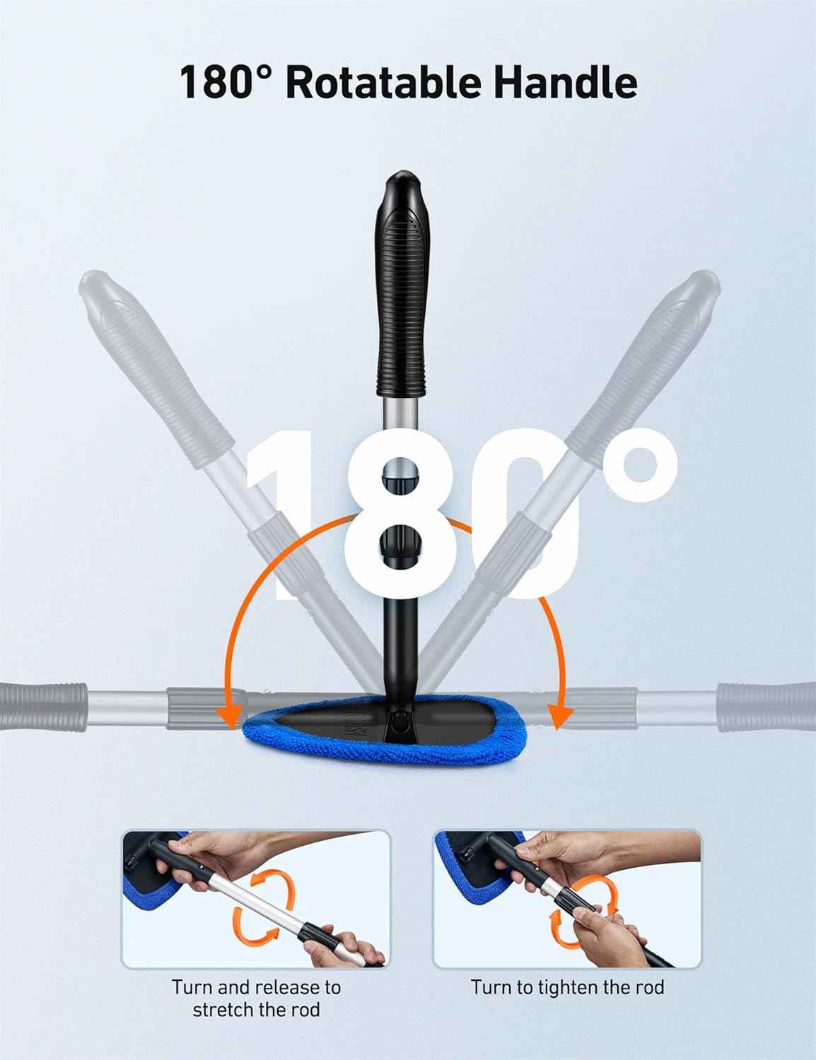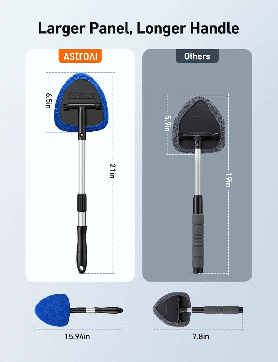- AstroAI Windshield Cleaner Tool, Car Interior Detailing Cleaning Kit with Extendable Handle and 4 Upgraded High-Density Reusable Microfiber Pads, Auto Glass Wiper Brush Kit for Cars, Blue, 15.9in-21in