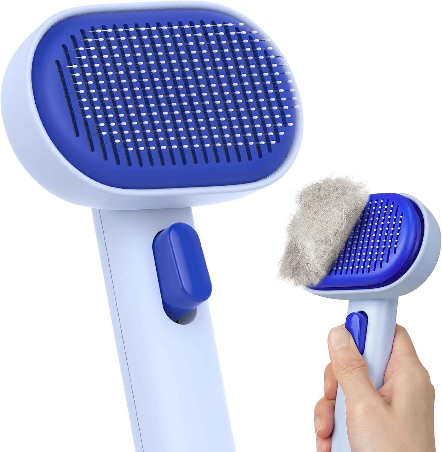 The mental pins on the cat brush with release button have round rubber tips on the ends. Simply put, it can be used as a daily massage comb for cats to enjoy.