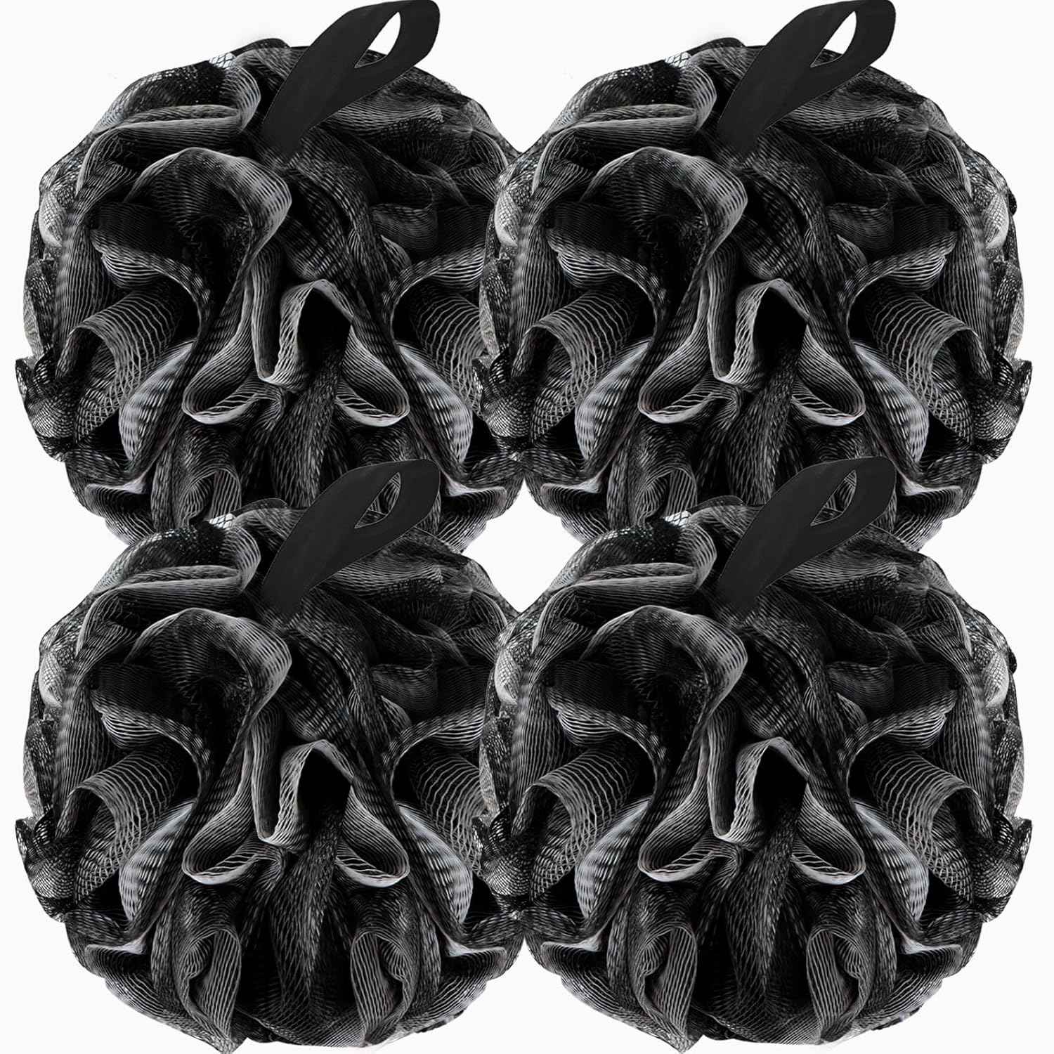 Bath Loofah Shower Sponge Body Back Scrubber Soft Mesh Shower Puffs Exfoliating Loofa for Women & Men Bath Accessories Cleaning Tool (Pack of 4 60G Loofah, Dark Elf)