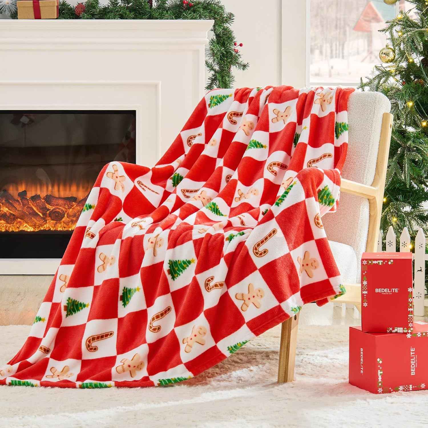 - BEDELITE Christmas Throw Blanket– Cozy Holiday Blanket with Red Snowflake Design, Soft Lightweight Fleece Christmas Blanket for Couch & Bed, Festive Home Décor & Gift, 50"x60"