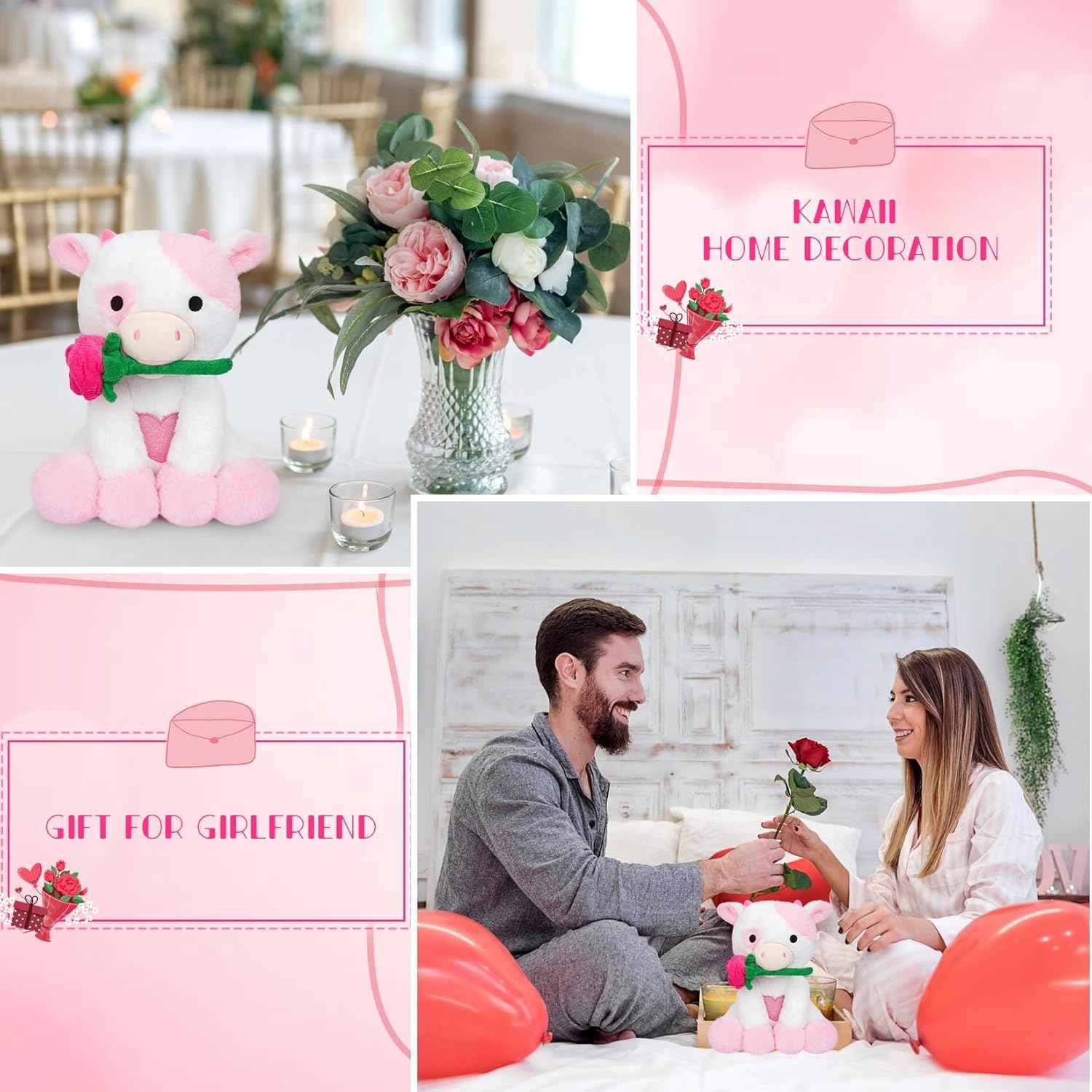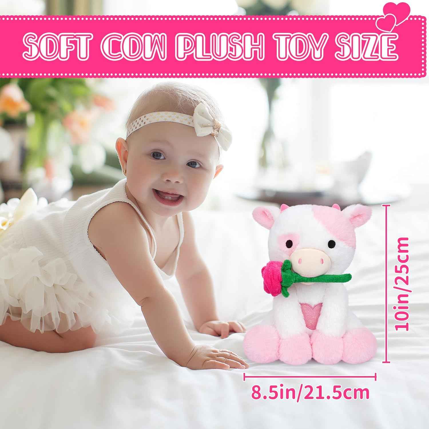 - Bekrgwiy Valentines Stuffed Animal,10in Pink Cow Stuffed Animals with Rose,Valentines Day Plush Cow,Pink Cow Plushie Doll Toys,Valentines Day Gifts for Her Girlfriend Kids