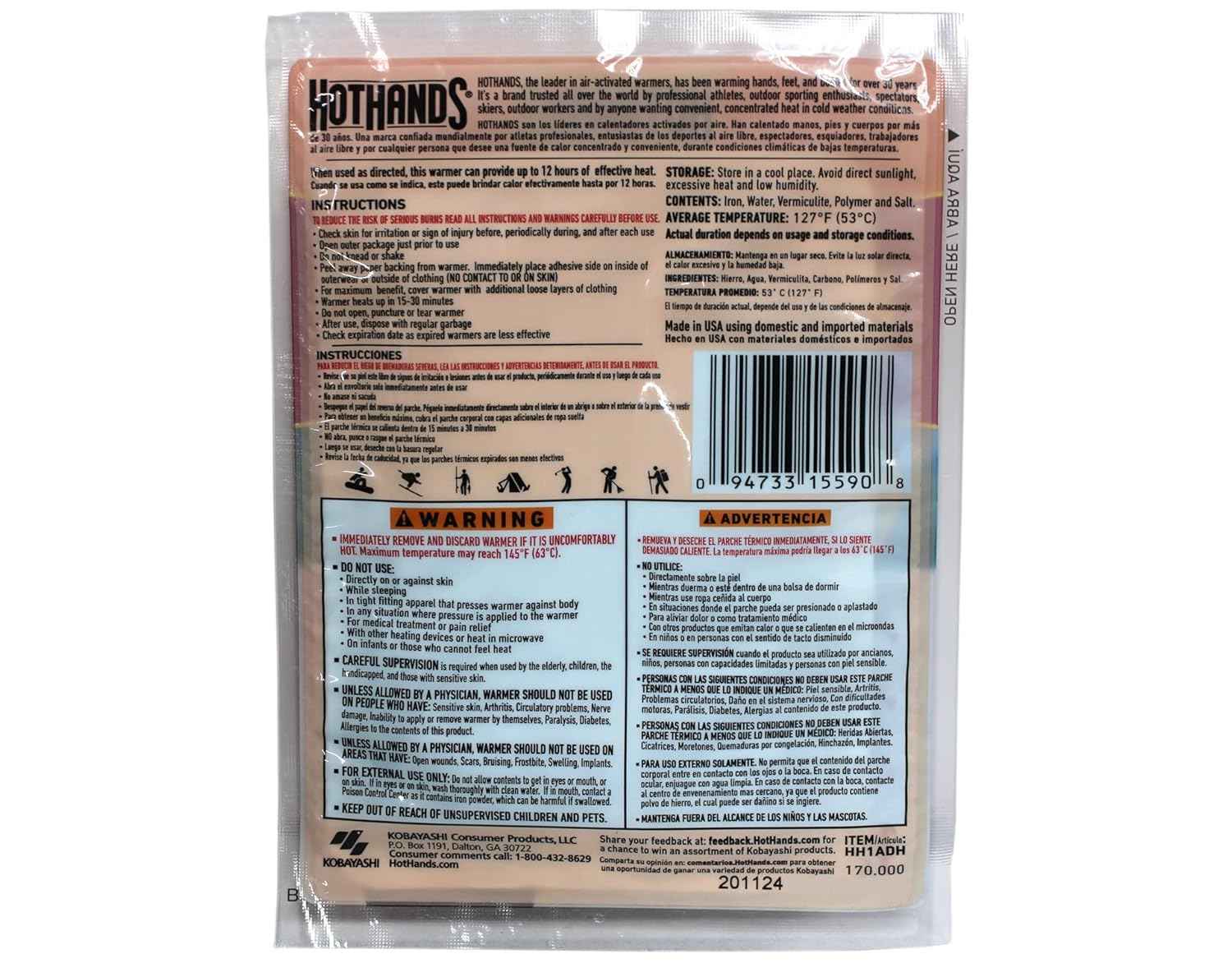 Body Warmer, Heating Time Up to 12 hr., Length 5 In., Width 3-3/4 In., Package Configuration Each, Activates By Contact with Air, For Use With Gloves, Pockets