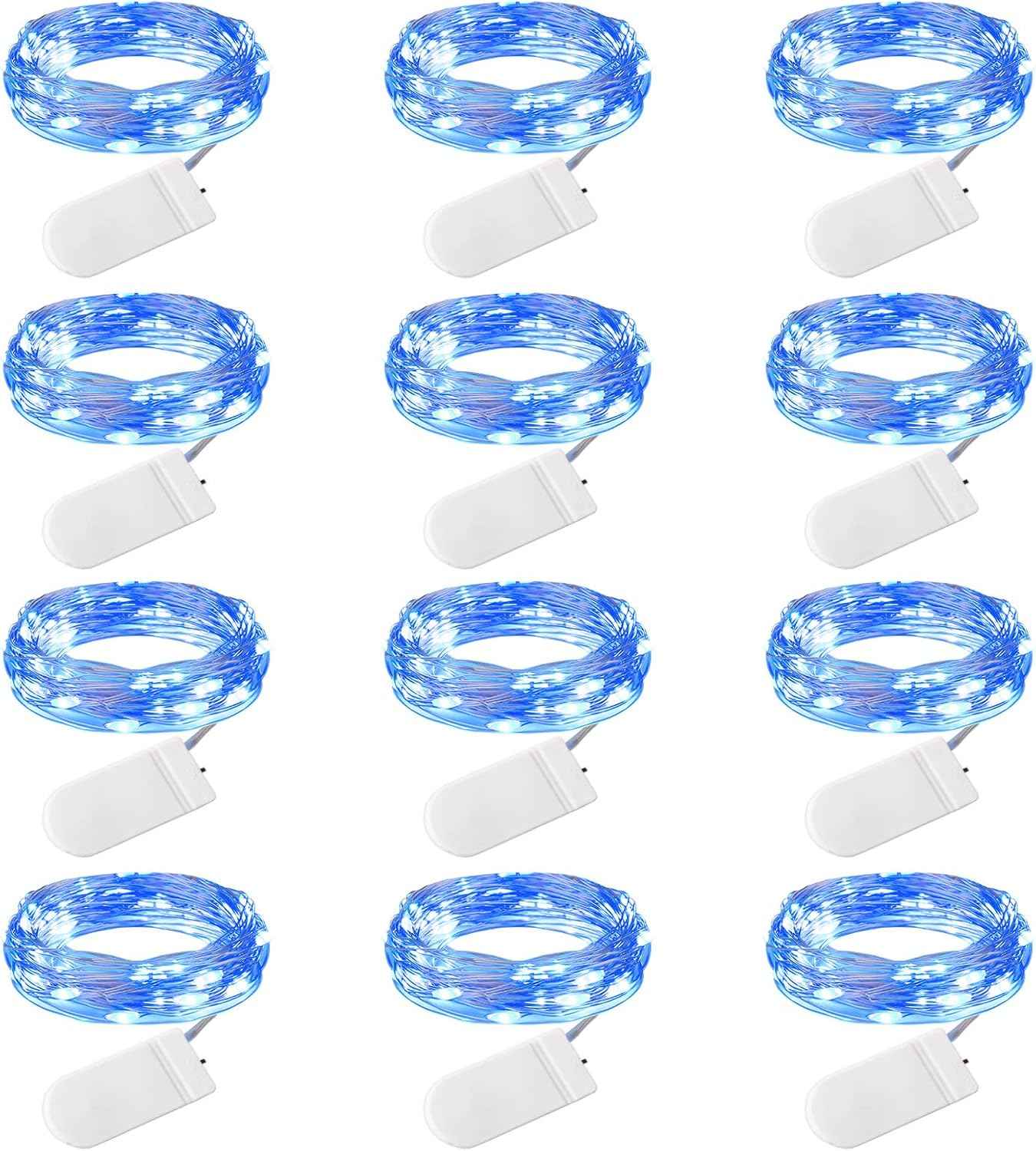 Brightown 12 Pack LED Fairy Lights, Battery Operated 7FT Firefly String Lights with 20 Waterproof LEDs on Silver Wire for DIY Crafts, Wedding Centerpieces, Party & Christmas Décor