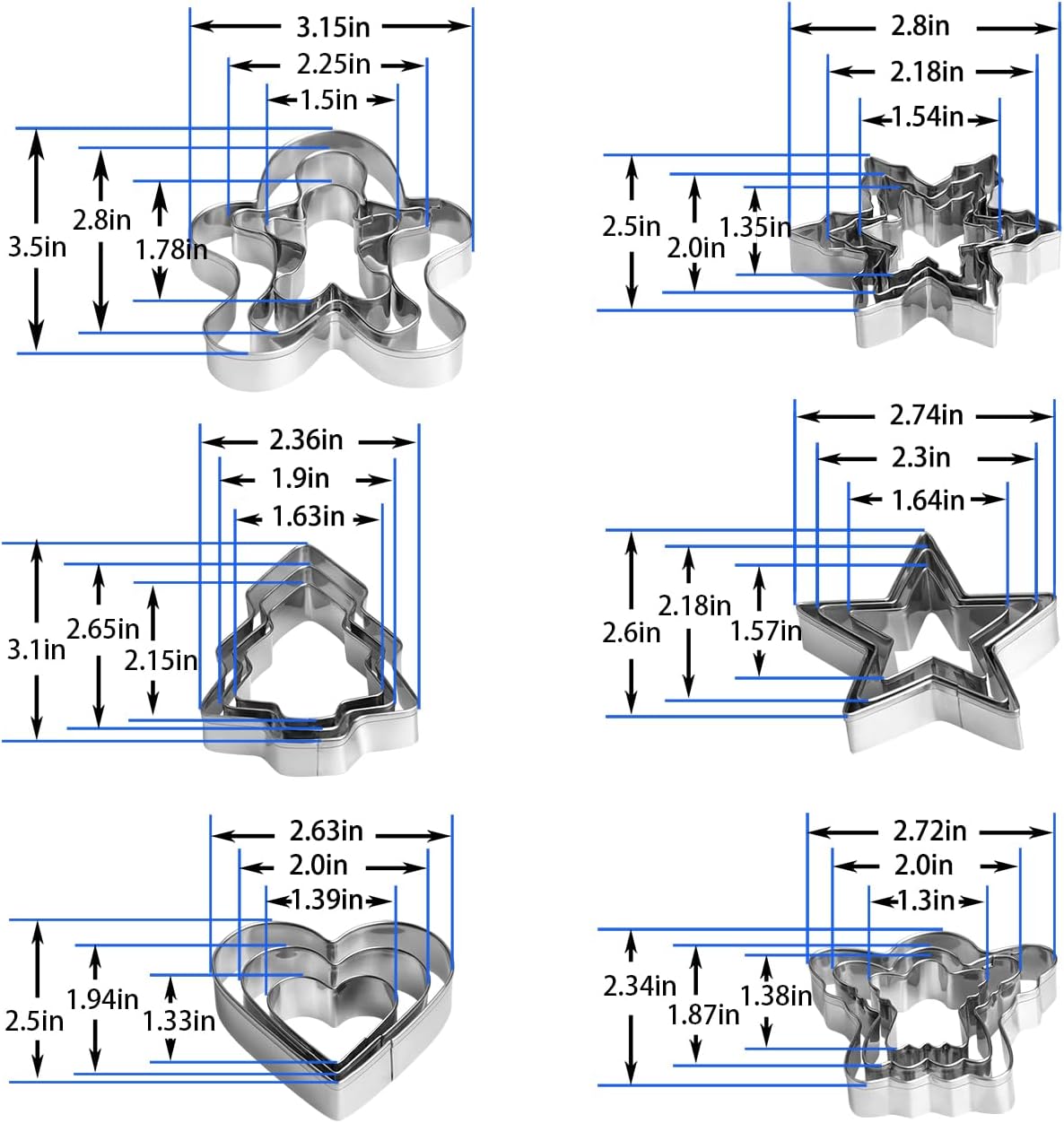 - Christmas Cookie Cutter Set - 18 Piece Gingerbread Man, Snowflake, Tree, Heart, Star, Angel Shapes for Holiday Winter Baking