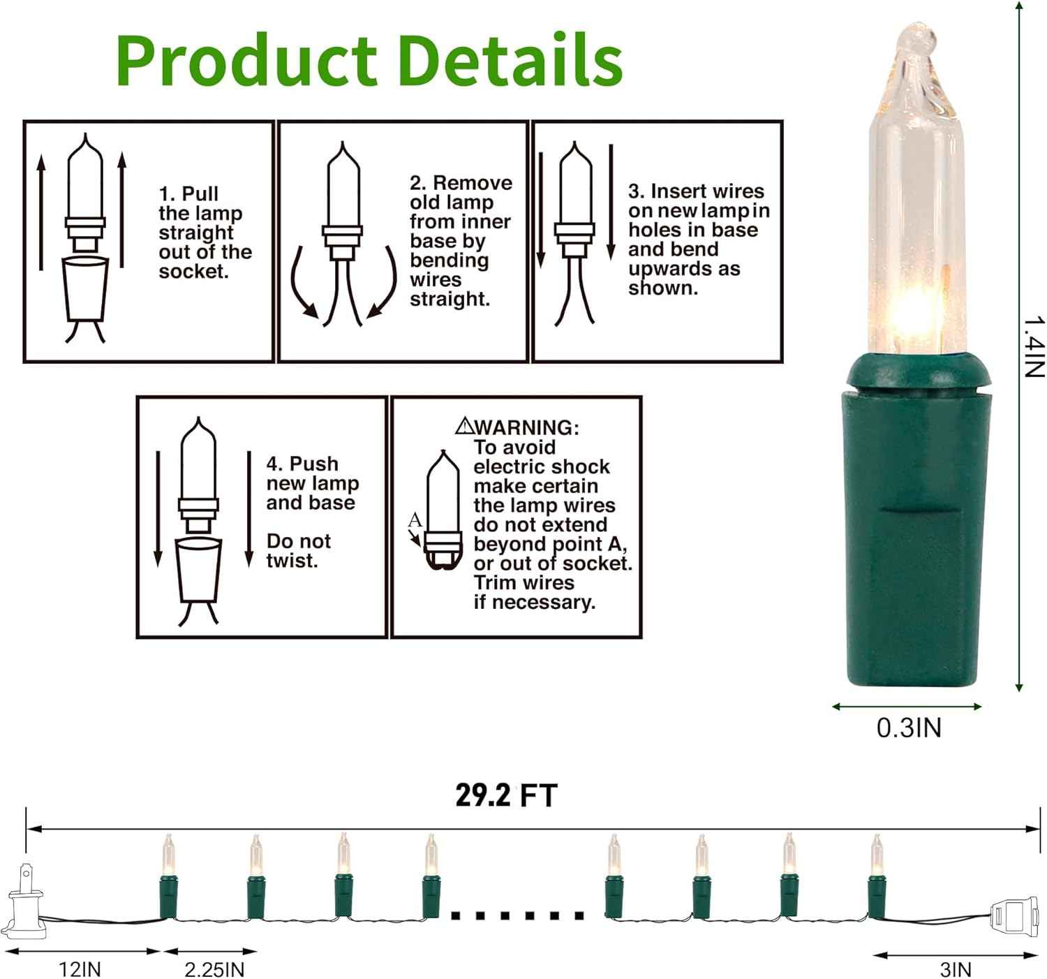 The bulb is firmly connected to the base, so there is no need to worry about the bulb falling during the decoration process. The light string has a built-in 3A fuse, 120V high voltage, and UL safety certification.