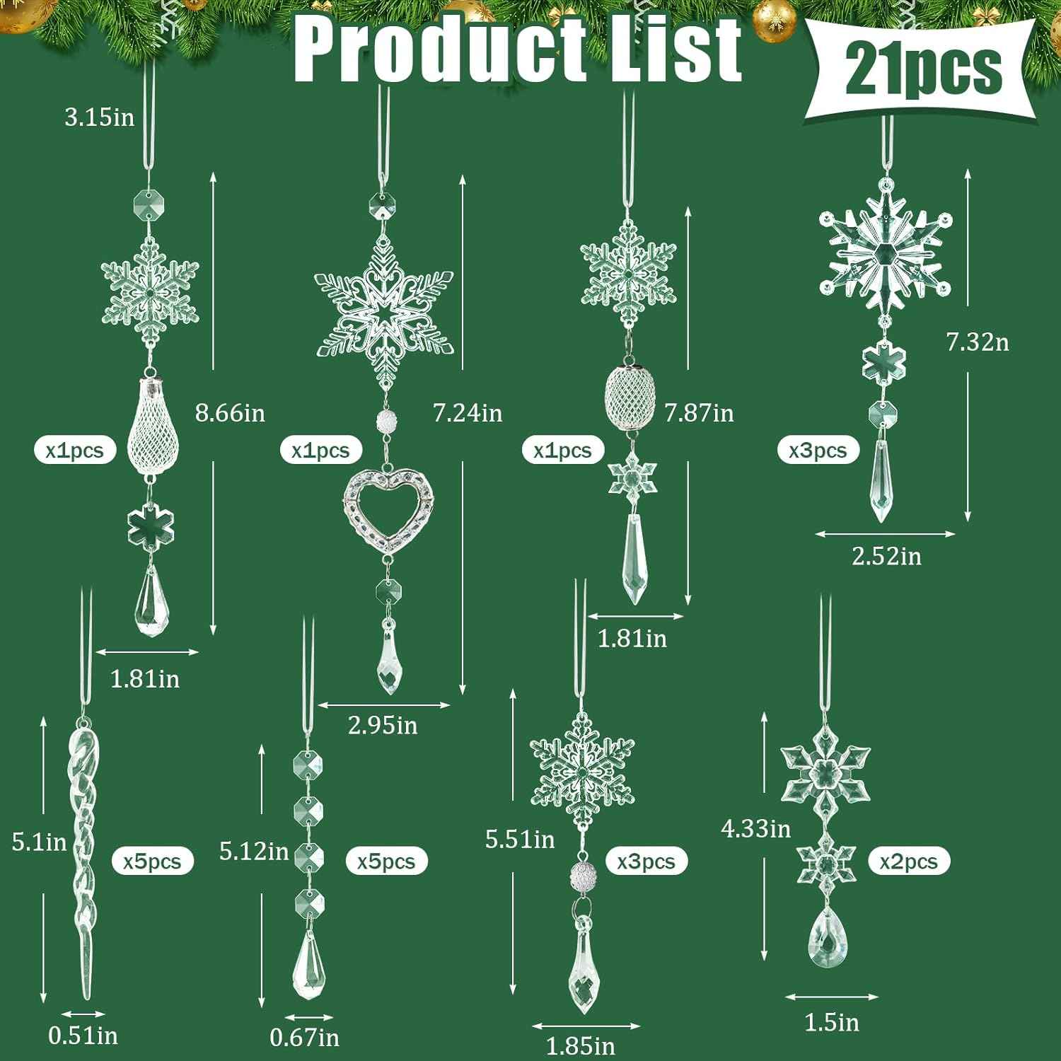 21pcs Christmas Tree Crystal Snowflake Ornaments