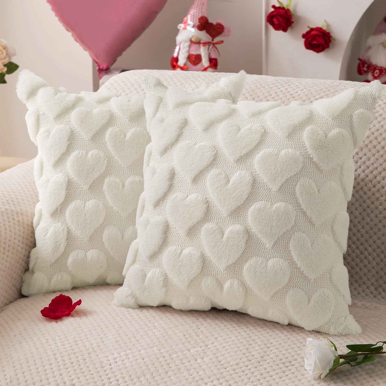 DFXSZ Valentines Pillow Covers 18x18 inch Set of 2 Valentines Day Decoration Red Heart Soft Plush Faux Fur Jacquard Throw Pillows for Bedroom Sofa Holiday Festivals Home Decor PTK017A18