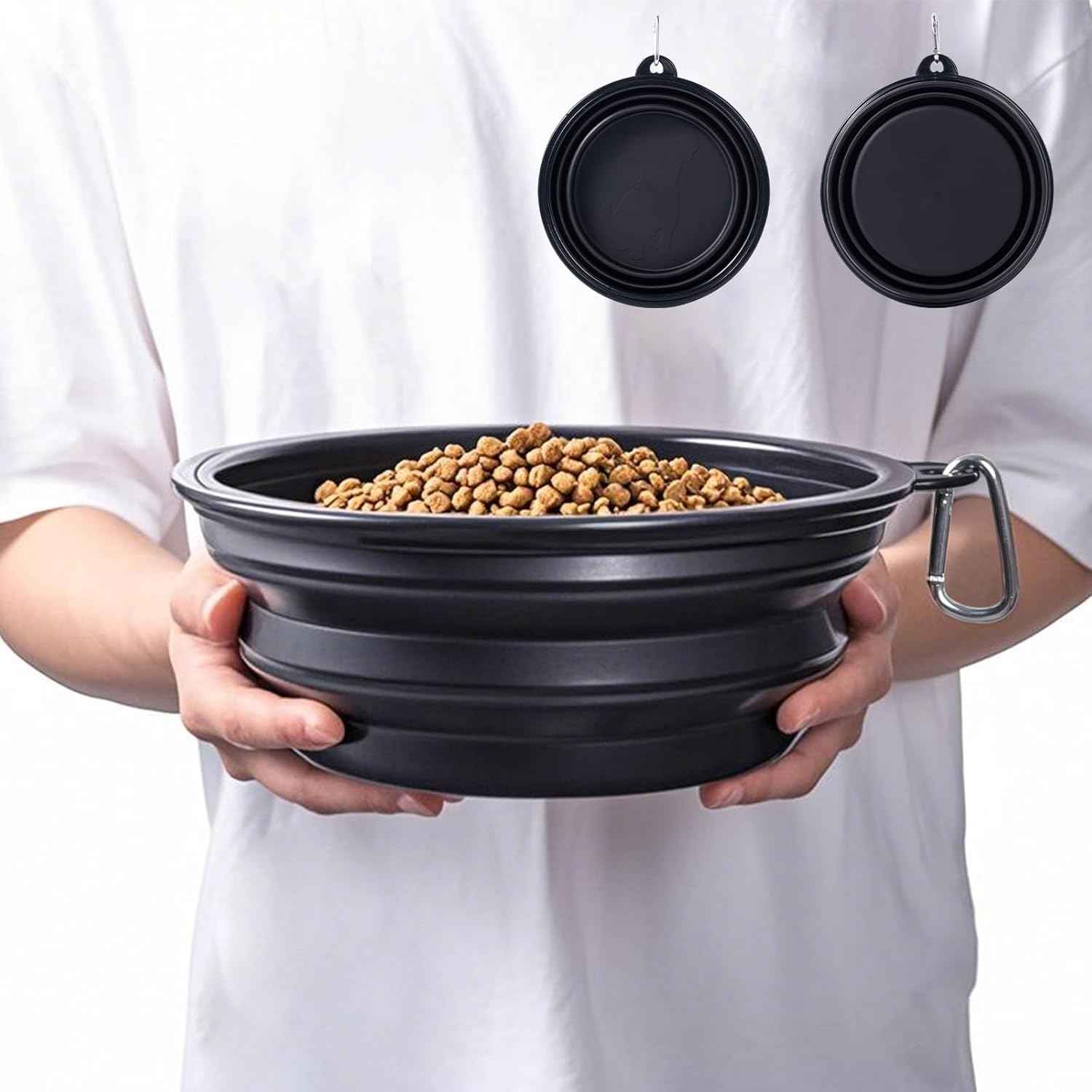 Dog Bowl Pet Collapsible Bowls, 2 Pack for Cats Dogs, Portable Pet Feeding Watering Dish for Walking Parking Traveling with 2 Carabiners (Small, Blue+Green)