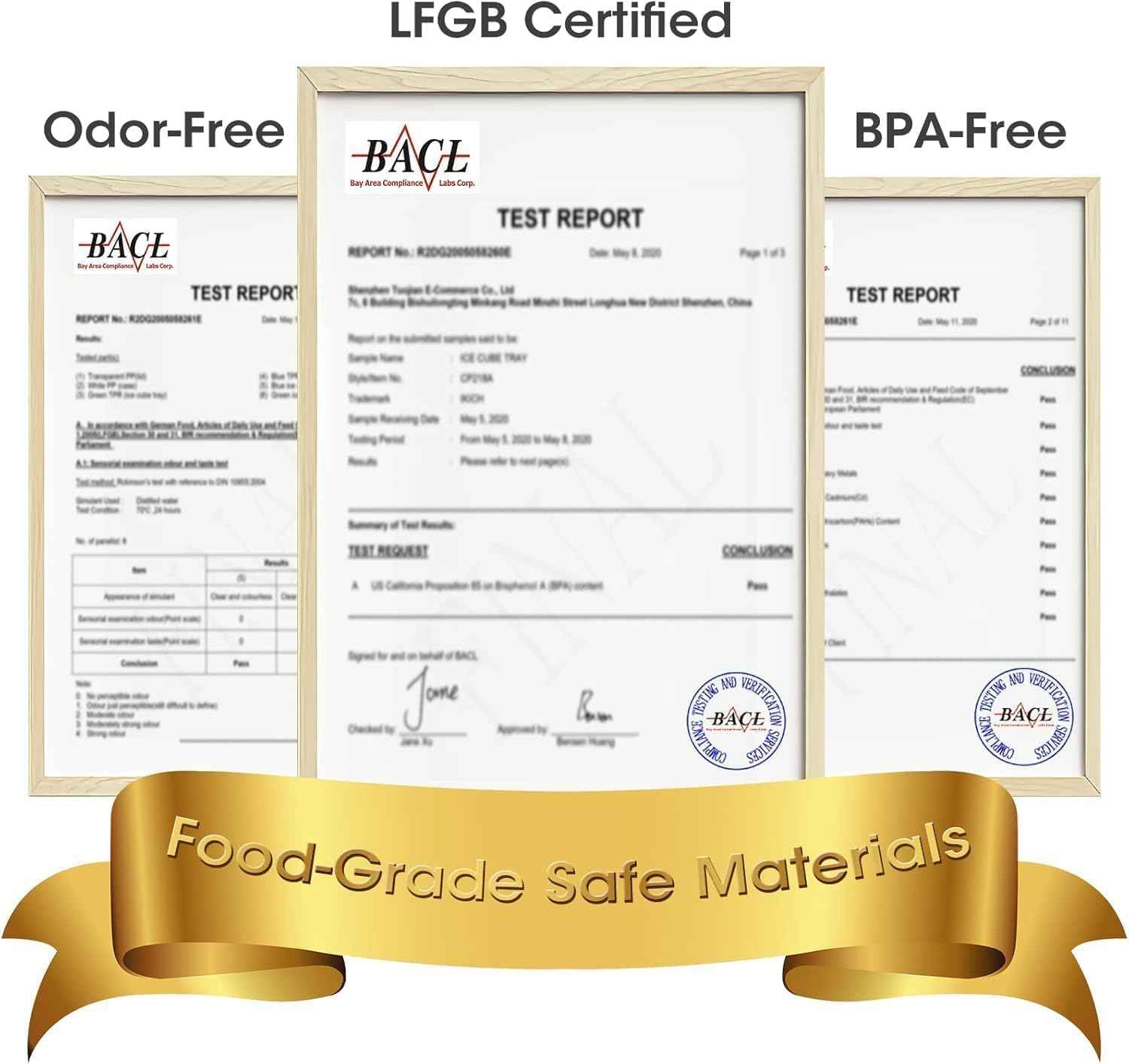 DOQAUS Ice Cube Tray with Lid and Bin, 4 Pack Silicone Plastic Ice Cubes Trays for Freezer with Box/Container, Stackable with Storage Iced Bucket Kits, Scoop, for RV, Soup, Food, Cocktail, Coffee
