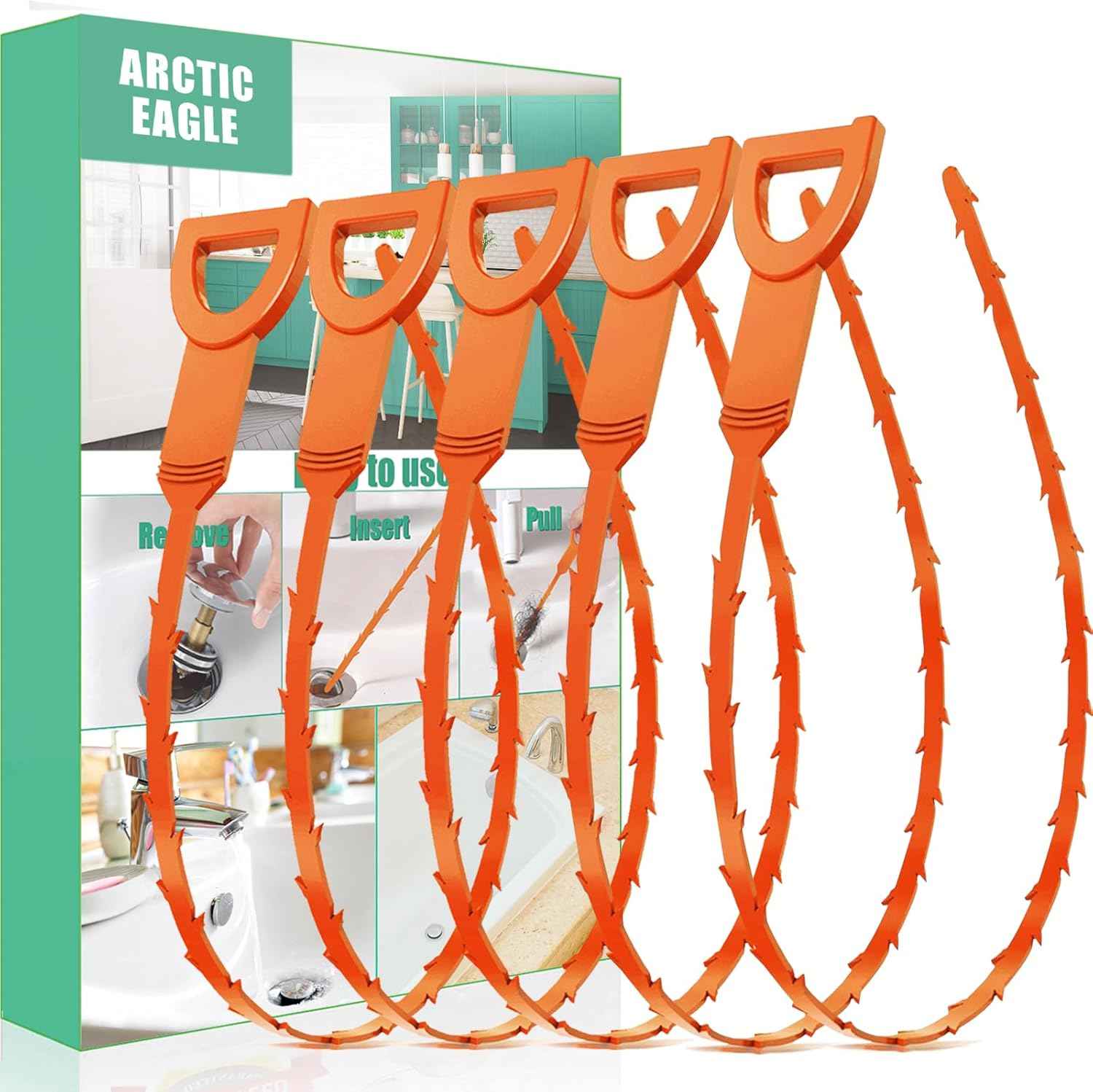 1.Straigthen the drain clog remover tool.Please wear work gloves before use to protect your hands from being injured.