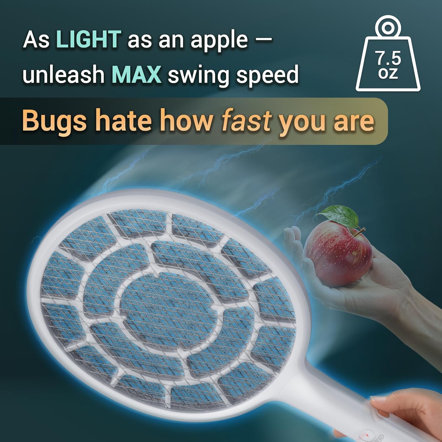 - Electric Fly Swatter, Bug Zapper, Mosquito Zapper Racket | Gold Zone Voltage, Densest 3 mm Mesh, Apple-Like Weight - AA Battery Powered (not incl.) - Indoor & Outdoor Use with Pro Swat Tips