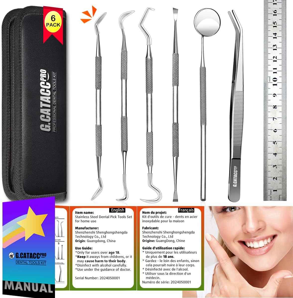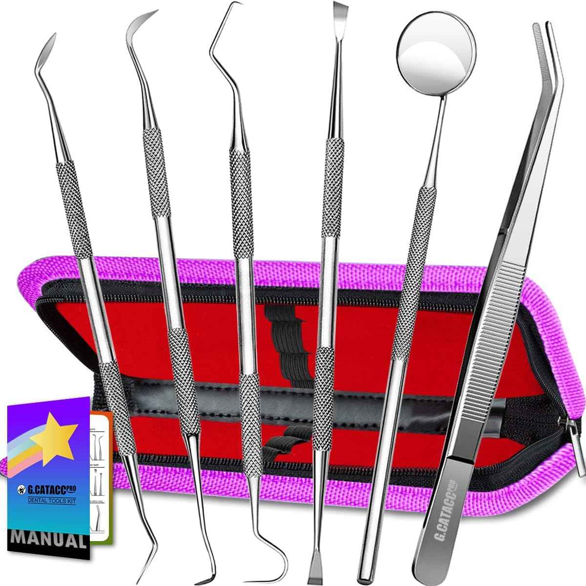 G.CATACC Dental Tools, Dental Pick Teeth Cleaning Tools Hygiene Kit, Plaque Remover for Teeth, Professional Stainless Steel Tooth Scraper Plaque Tartar Cleaner - with Case
