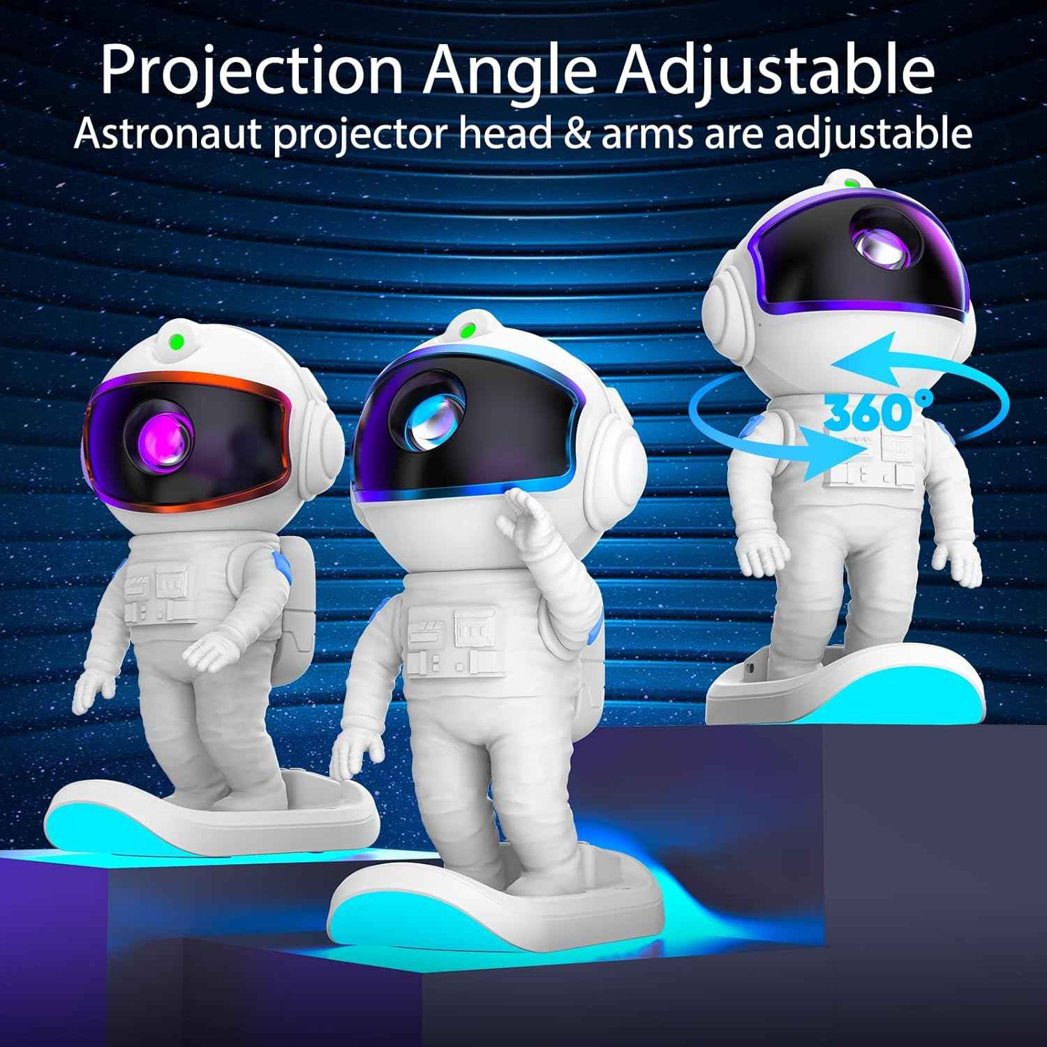 3. Unique design galaxy projector, the light that the star projector has on his little skate board and the astronauts arms can be posed in different positions.