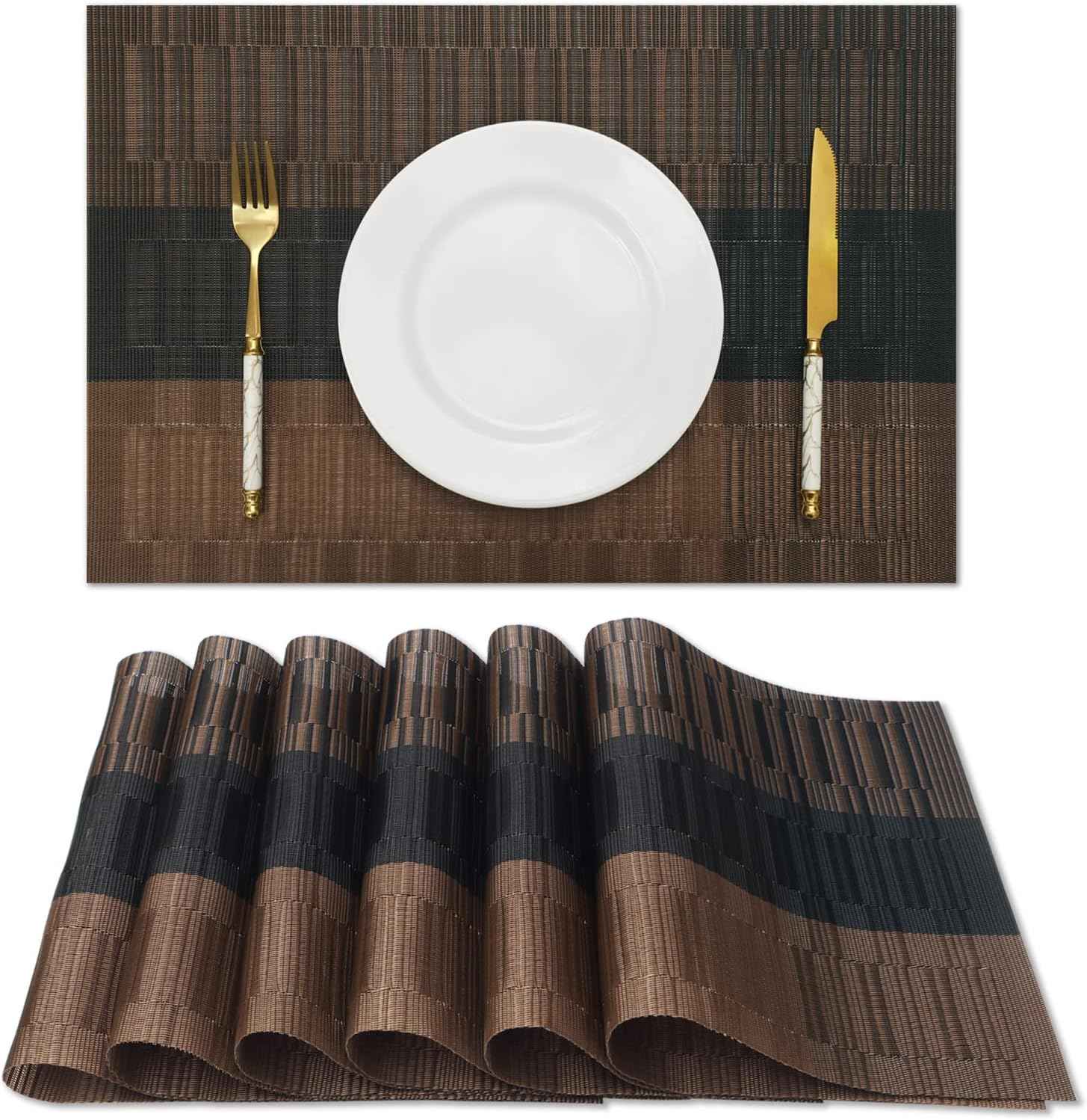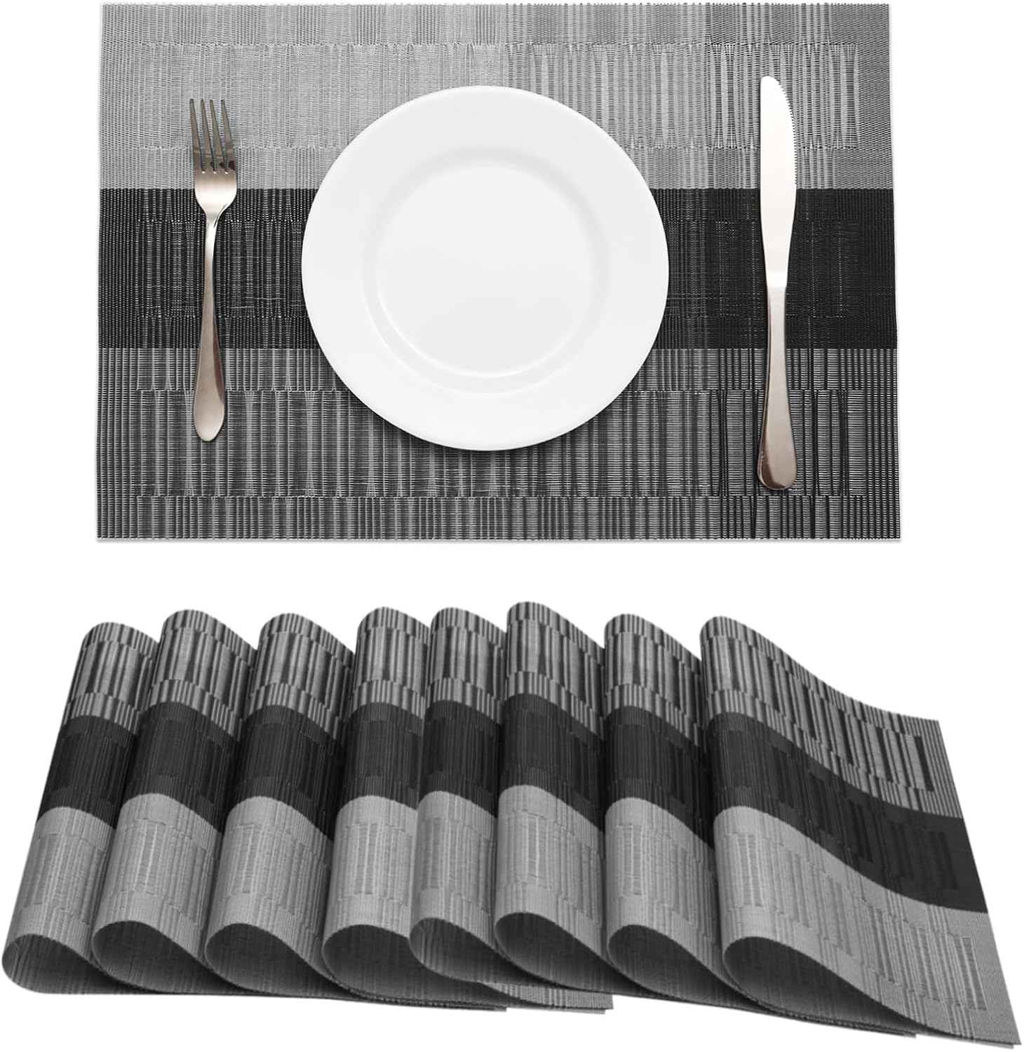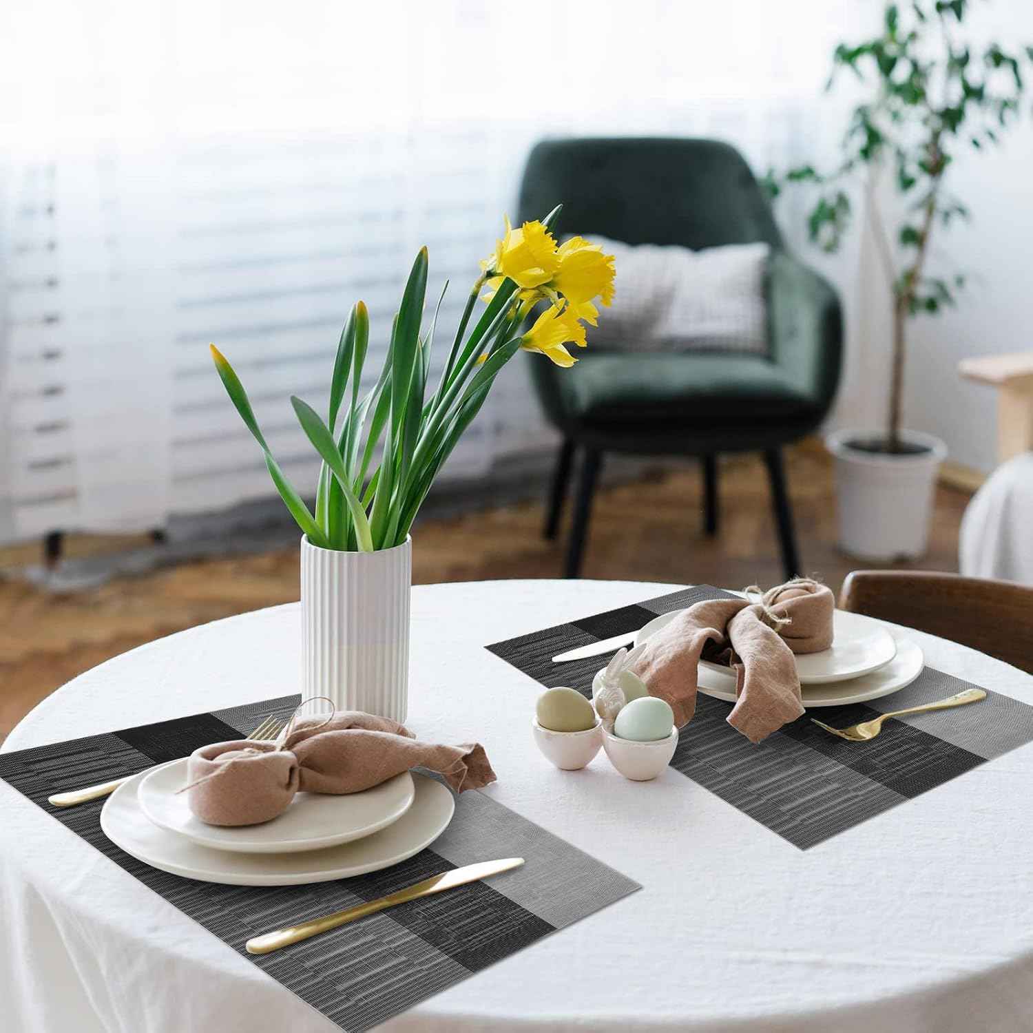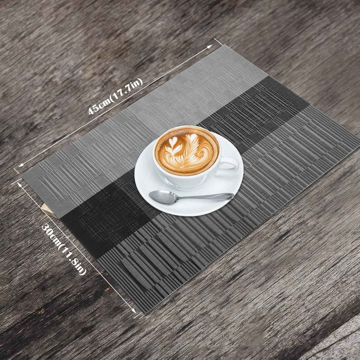 HeloHo Black Placemats Set of 4 Heat-Resistant Washable Place Mats Non-Slip Vinyl Woven Table Mats Wipeable Placemat for Kitchen Dining Table Decoration Indoor Outdoor