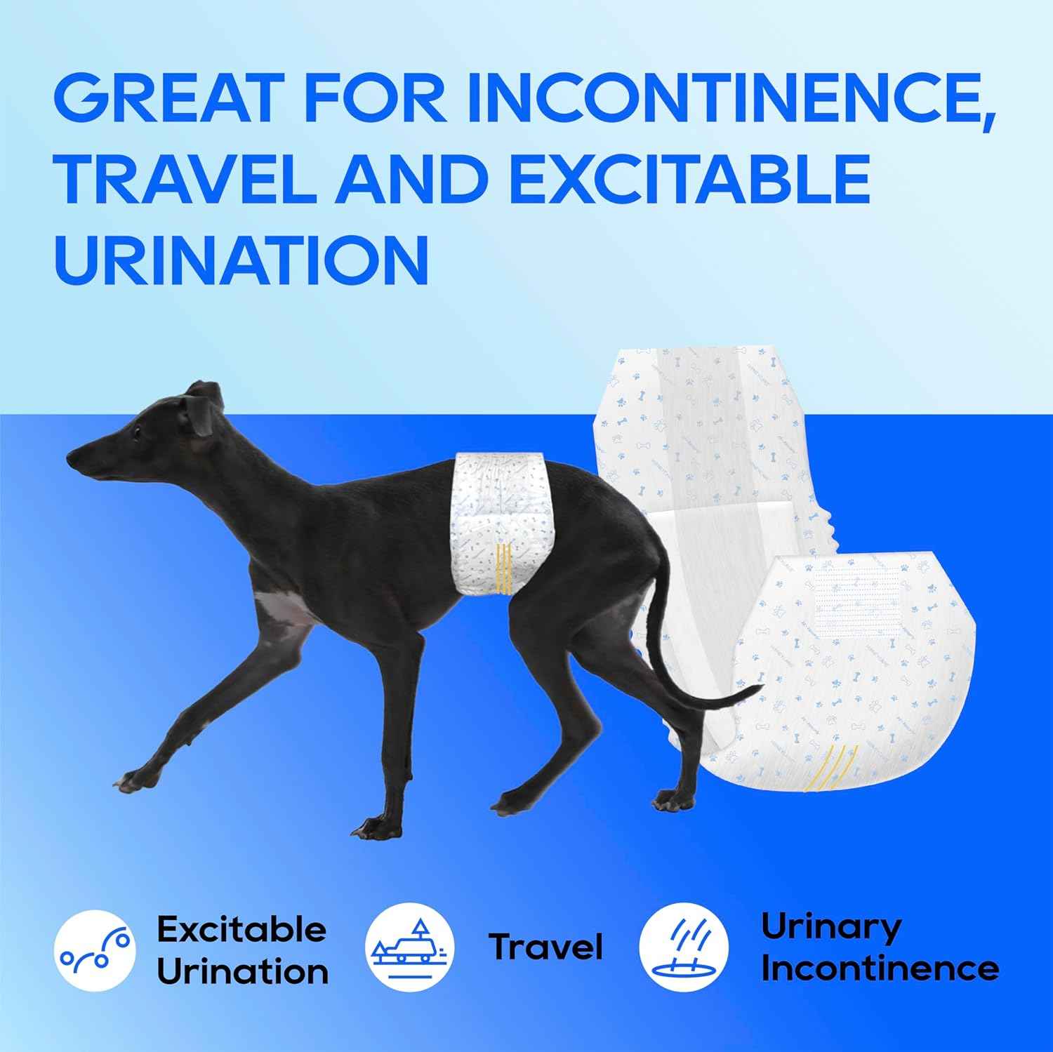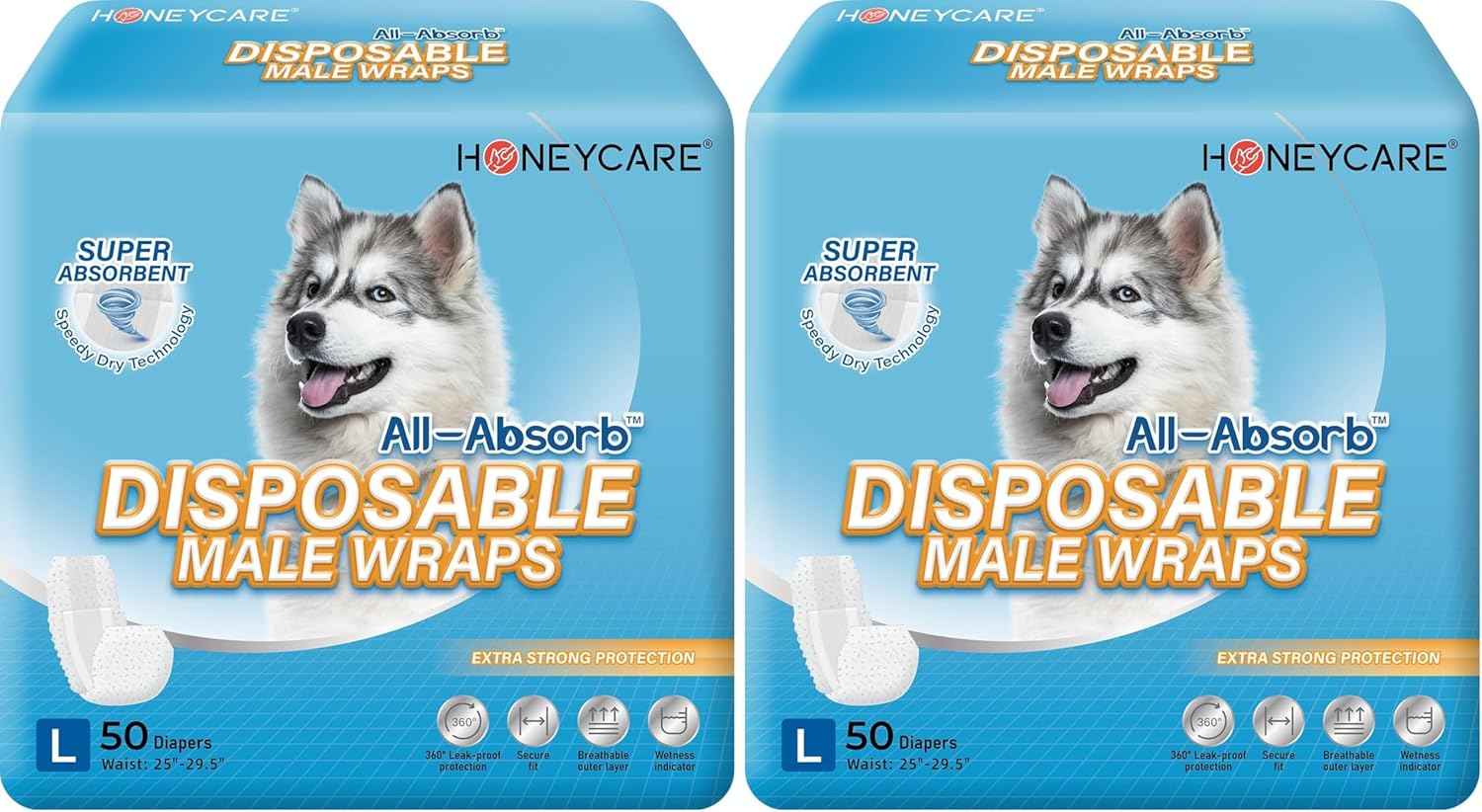 WRAP IT UP- All-Absorb Disposable Male Wraps are designed to fit: -Large-sized male dogs with a 25 - 32 inch waist. -Medium-sized male dogs with a 18 - 25 inch waist. -Small-sized male dogs with a 12 - 18 inch waist. -Extra-Small sized male dogs with a 6 - 13 inch waist. These are guaranteed to keep your little buddy comfy and dry, while helping you maintain peace of mind. RELIEF FOR WHEN HE RELIEVES HIMSELF - All-Absorb Disposable Male Wraps provide much needed protection for male dogs with incontinence, excitable urination, or those who feel compelled to mark things that are clearly not his.