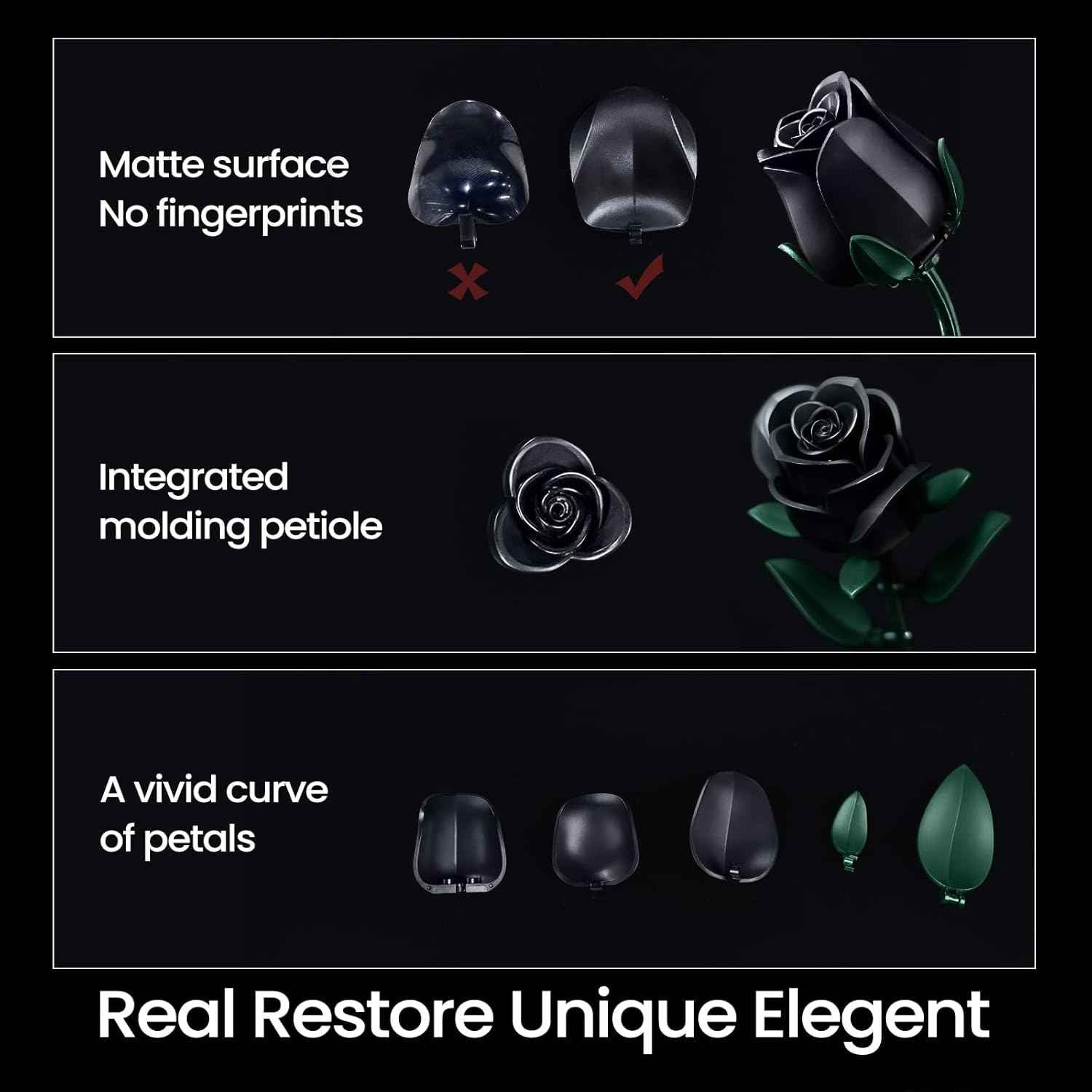 - iATOM Black Roses Flower Building Set - 3Pack, Gift for Valentine's Day for Her/Mom/Girlfriend/Wife/Couple, Gothic Romantic Emo Horror Retro Artificial Flowers Botanical Collection Home Decor