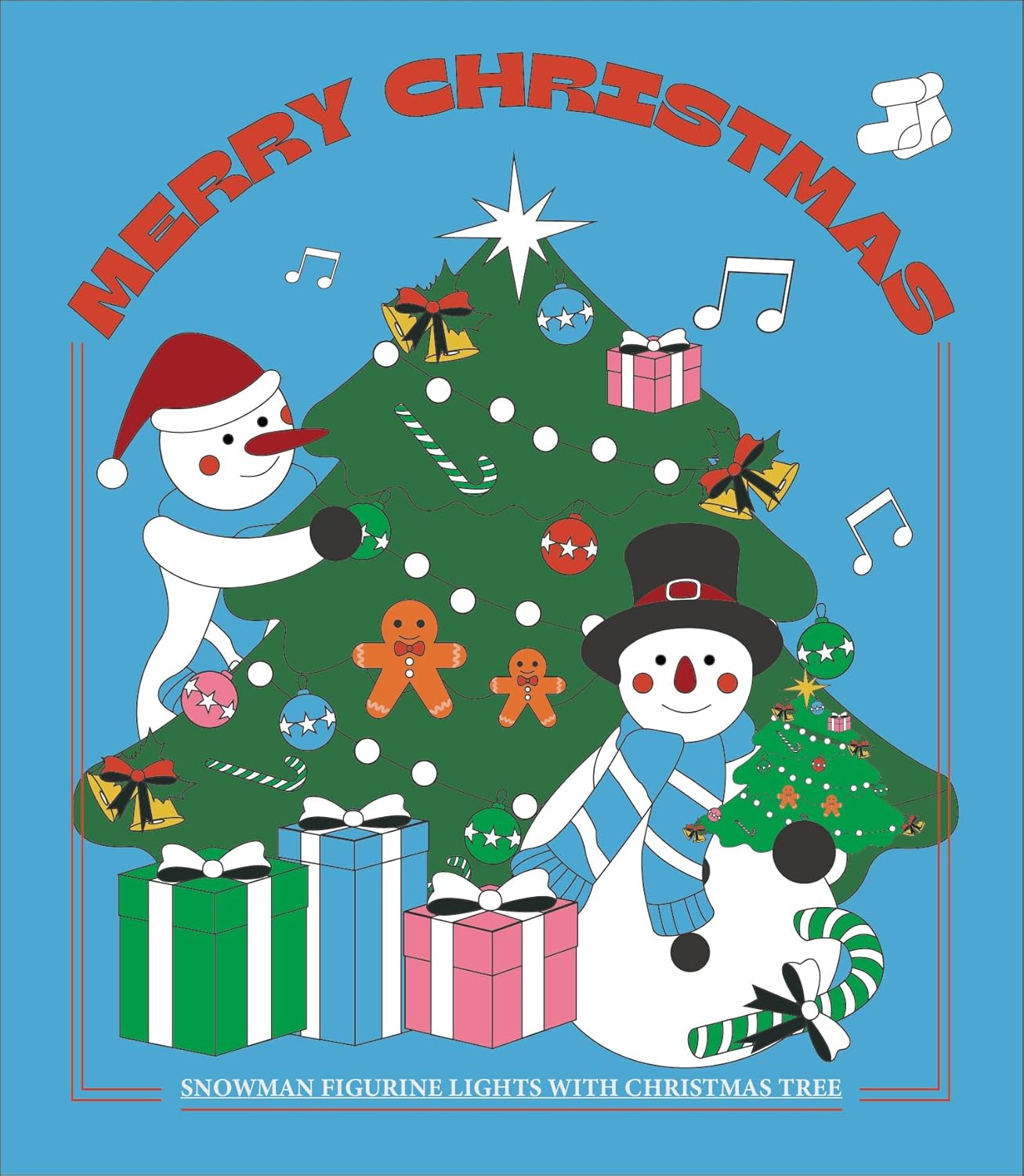 Snowmen Figurines with Lighted Christmas Tree and Wreath