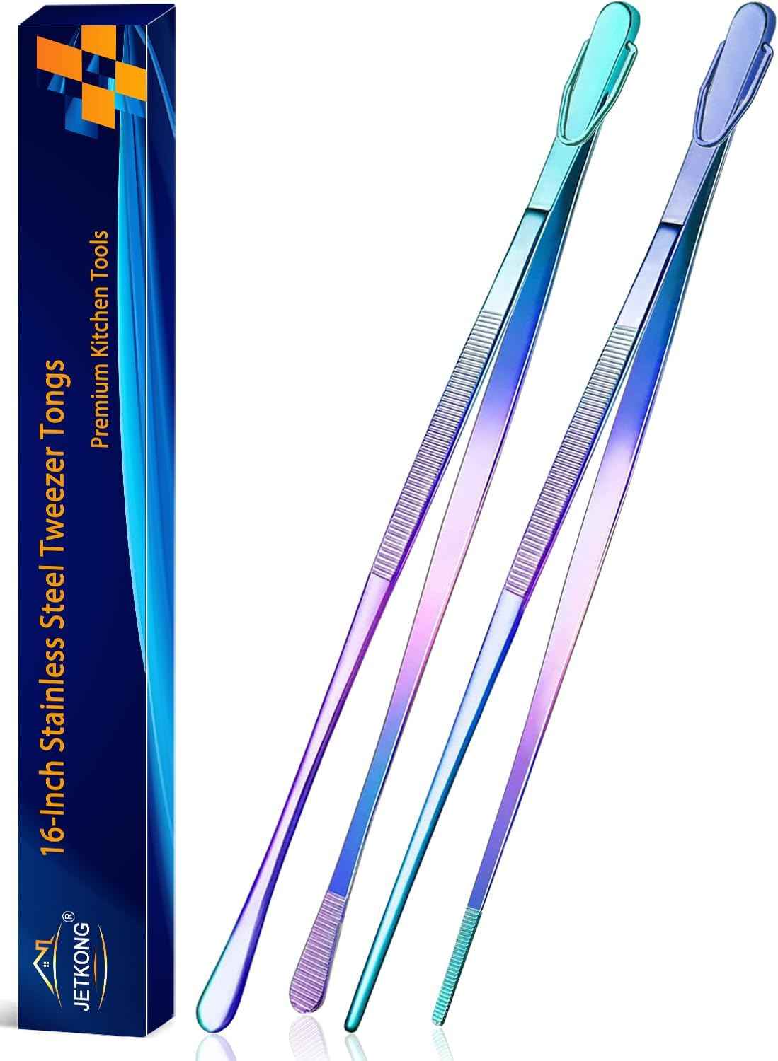 JETKONG 2 Pcs 12-Inch Kitchen Tweezers Fine Tweezer Tongs, Extra-Long Stainless Steel Cooking Tweezers (Silver)