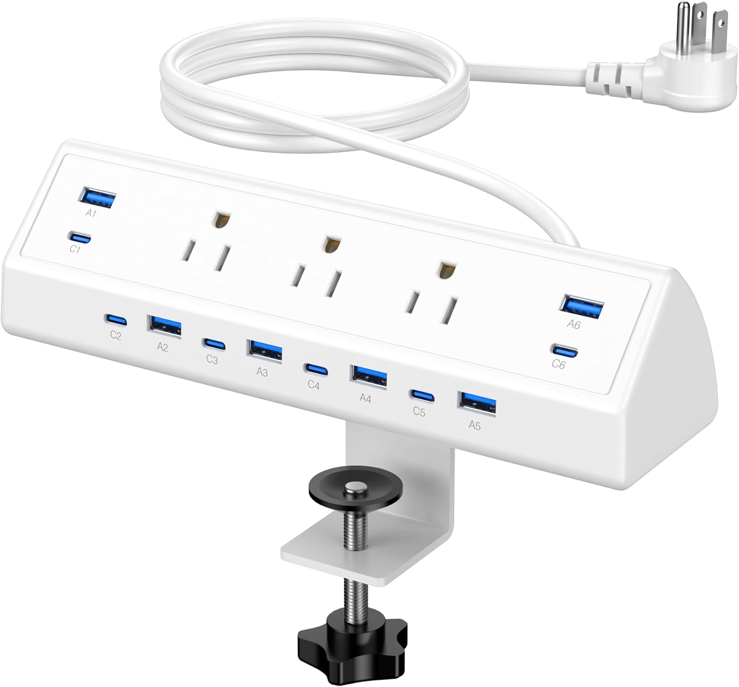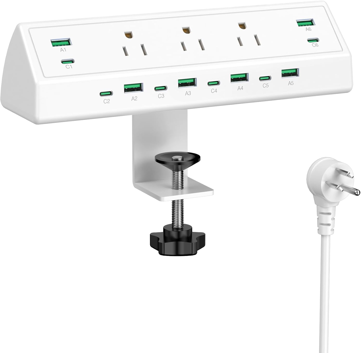 Whether you're looking for an office organizer, power strip with USB ports, desk outlet with USB port, or clamp power strip, this Desk Clamp Power Strip USB C will be one of your favorite home improvement must-haves after just one use! Not only does it provide convenience but also safety as it keeps wires from tangling as well as delivering secure grounding when plugged into grounded outlets.