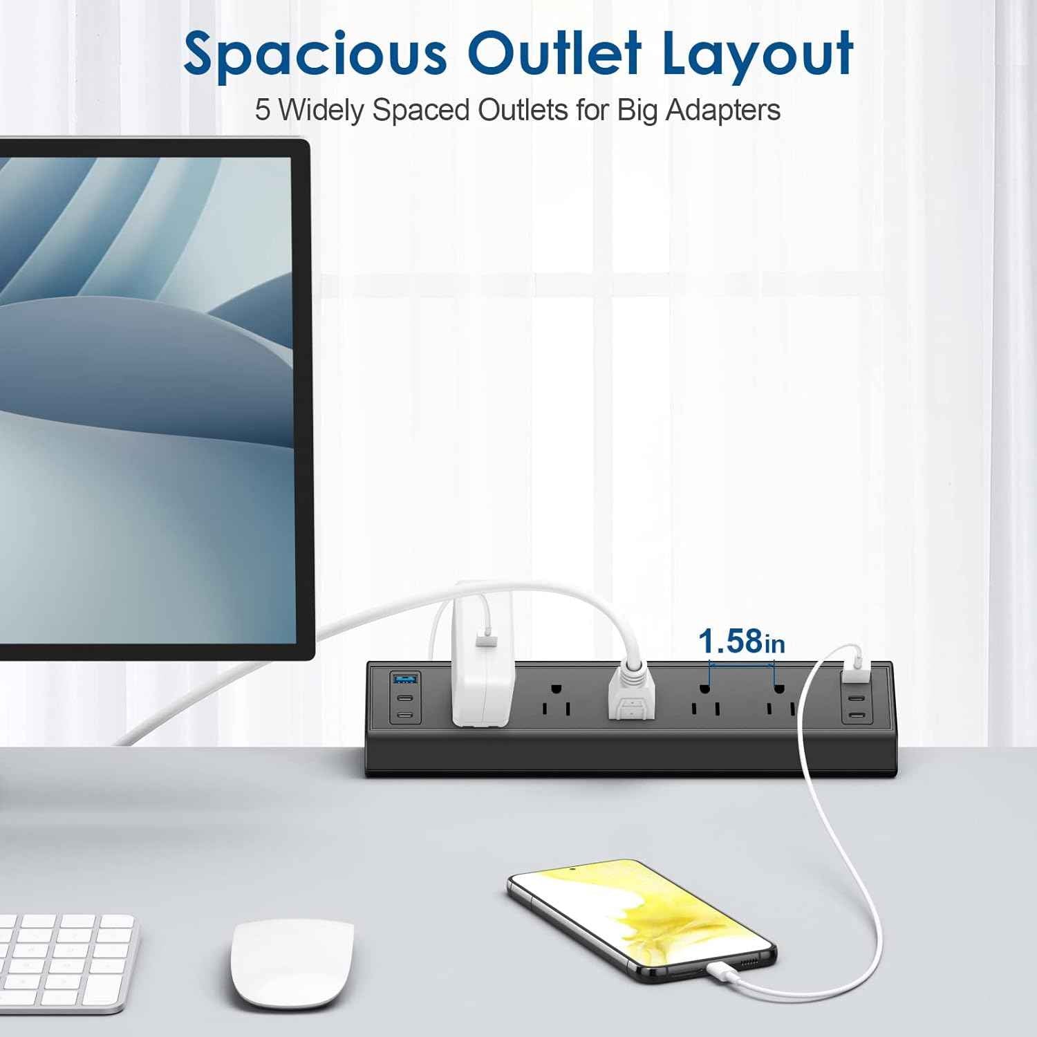 Look no further than a Desk Clamp Power Strip USB C! This Desktop Mount Surge Protector conveniently fits on the edge of any desk or table with a thickness of 1.6inches;