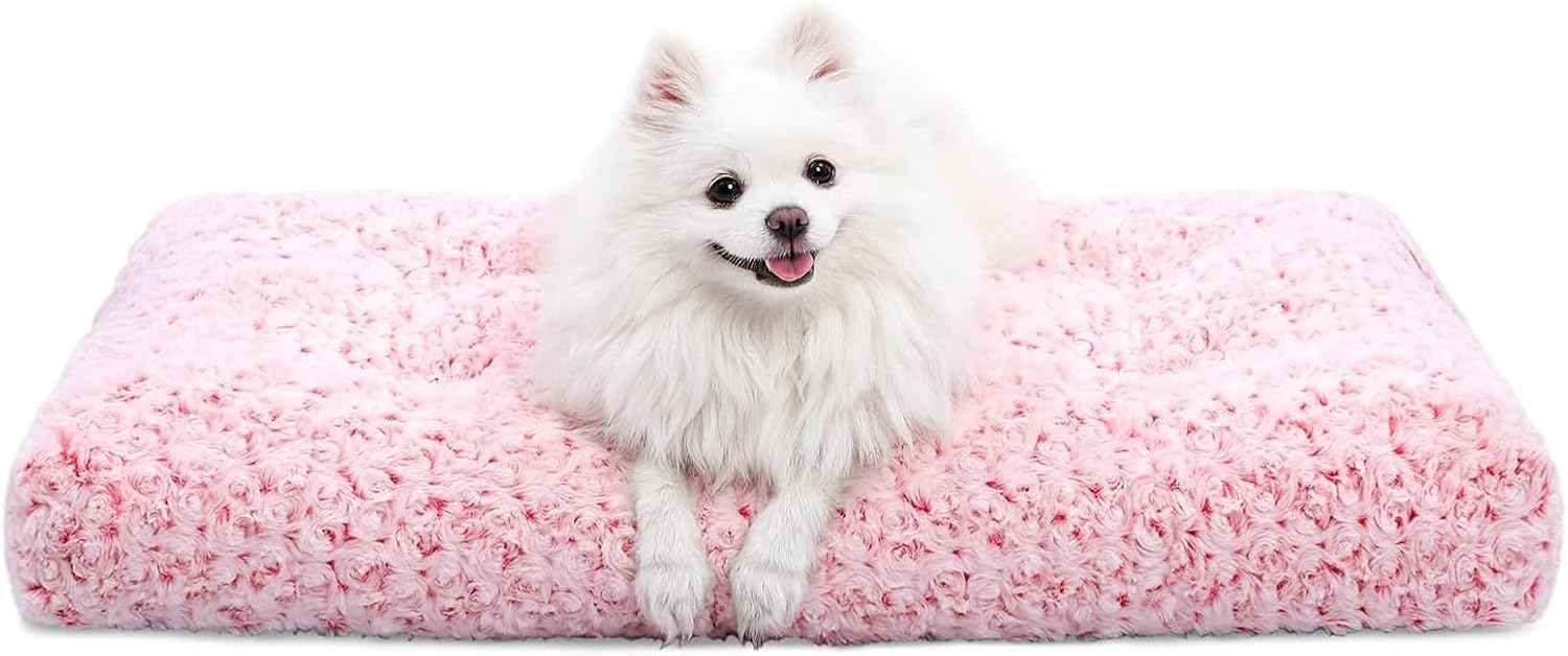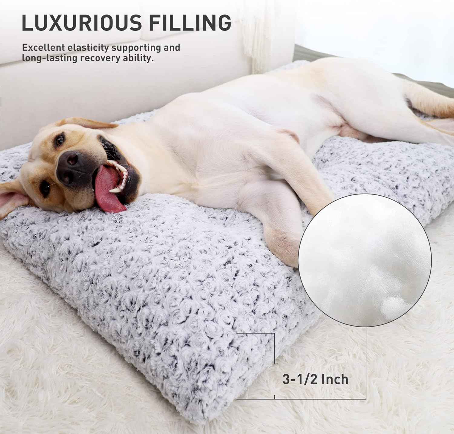 KSIIA Washable Dog Bed Deluxe Plush Dog Crate Beds Comfy Kennel Pad Anti-Slip Pet Sleeping Mat for Large, Jumbo, Medium, Small Dogs Breeds, 35" x 23", Gray