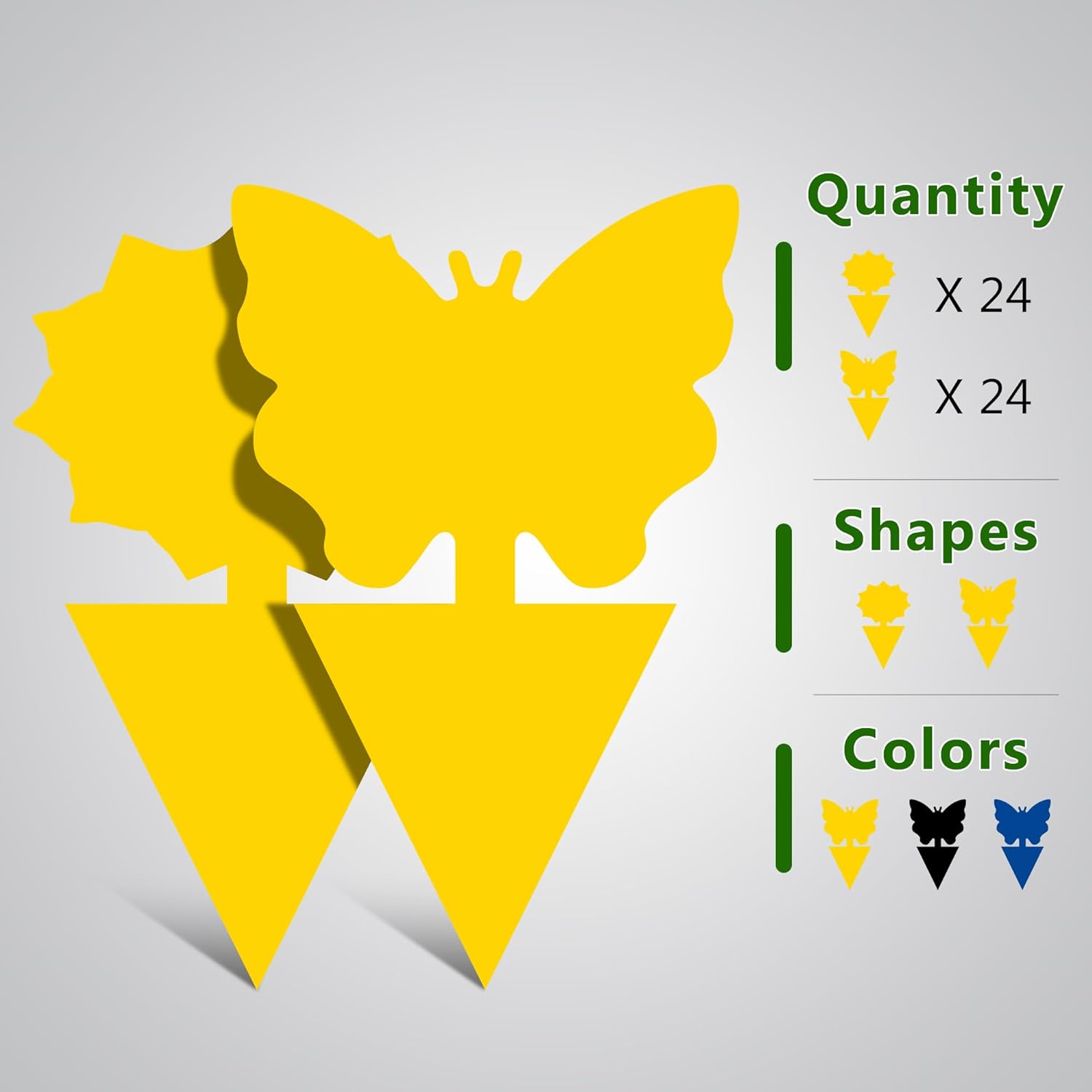 Landisun Fruit Fly Traps 48PCS Fungus Gnat-Traps for Indoor-Outdoor Yellow Fruit-Fly Sticky-Trap Plants Flying Bug Insects Traps