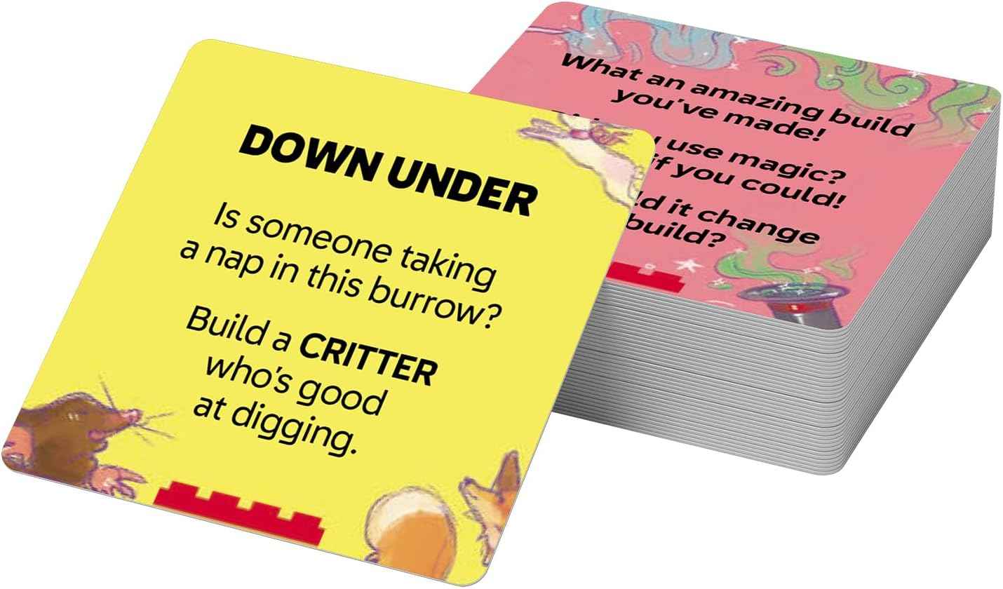 CREATE, BOOST, and add a TWIST! This Animal-themed, pocket-sized set provides multiple, fun building challenges for a 6+ audience, and includes: - a deck of 30+ cards with three different ways to play - 25 LEGO® elements Welcome to a world of endless possibilities! Each card contains a fun, animal-themed challenge, such as building an underground critter, making a creature with more than five legs or dreaming up your own sea creature. Can you build a nocturnal animal, a creature with a long neck or a majestic lion? LEGO® Books: ReCreate Activity cards are the go anywhere, play any time, ulltimate building experience. Whether playing on your own, with family or friends, keep drawing out new cards and experimenting with the LEGO elements to find out what you'll be building next. The only limit is your imagination! Also available: Space, Ocean, Tech, Nature, Castle LEGO, the LEGO logo and the Brick and Knob configurations are trademarks of the LEGO Group. ©2025 The LEGO Group. All rights reserved.