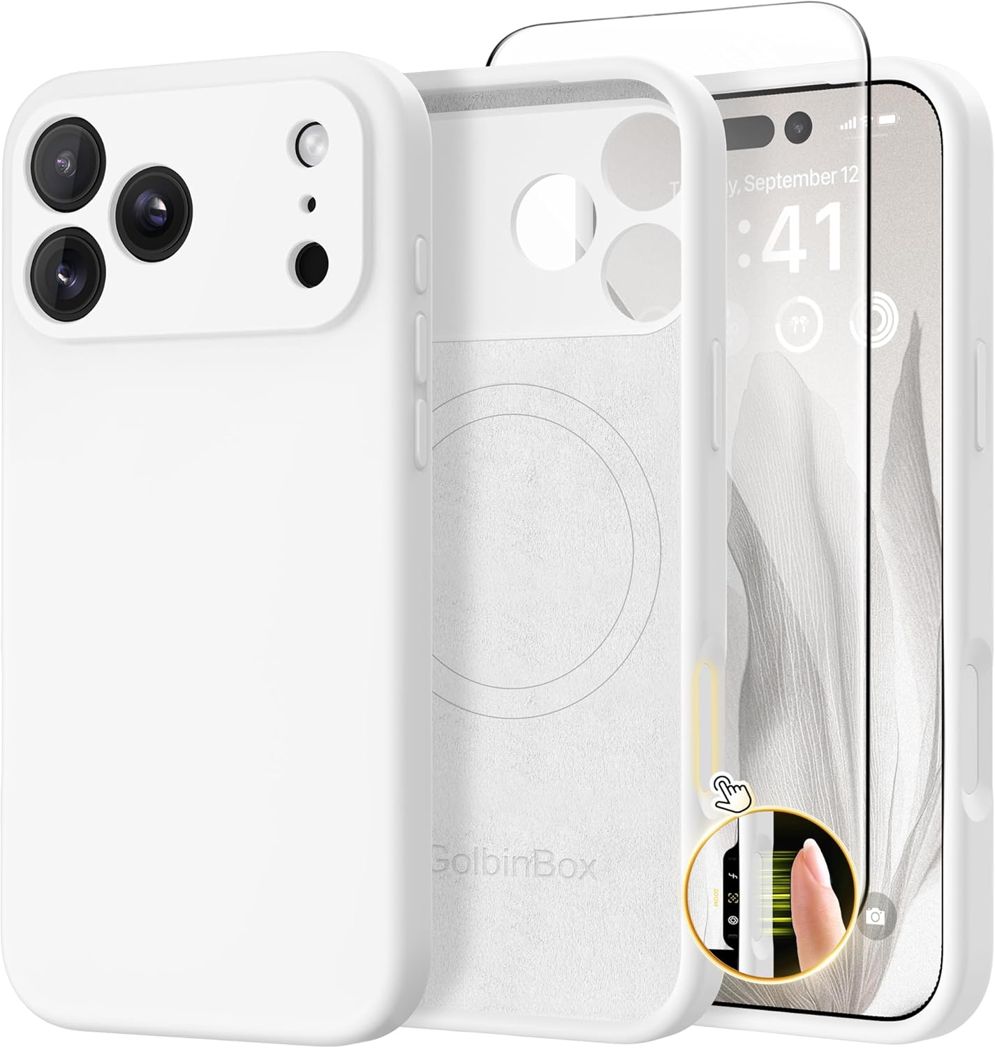 GolbinBox Magnetic for iPhone 17 Pro Max Case, Compatible with MagSafe, [Full Camera Protection] [Screen Protector], Silicone Shockproof Phone Cover with Anti-Scratch Microfiber Lining, Chalk Pink - Rayz Mart