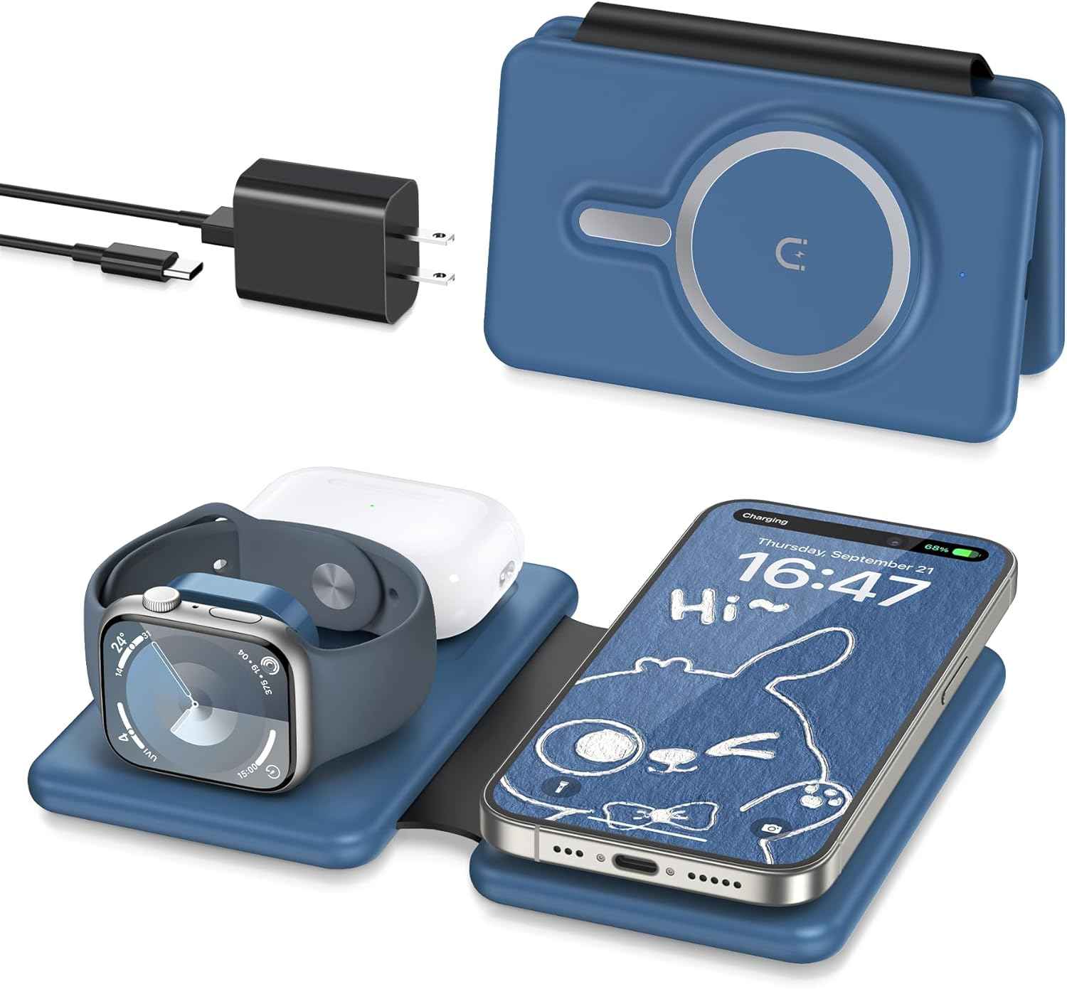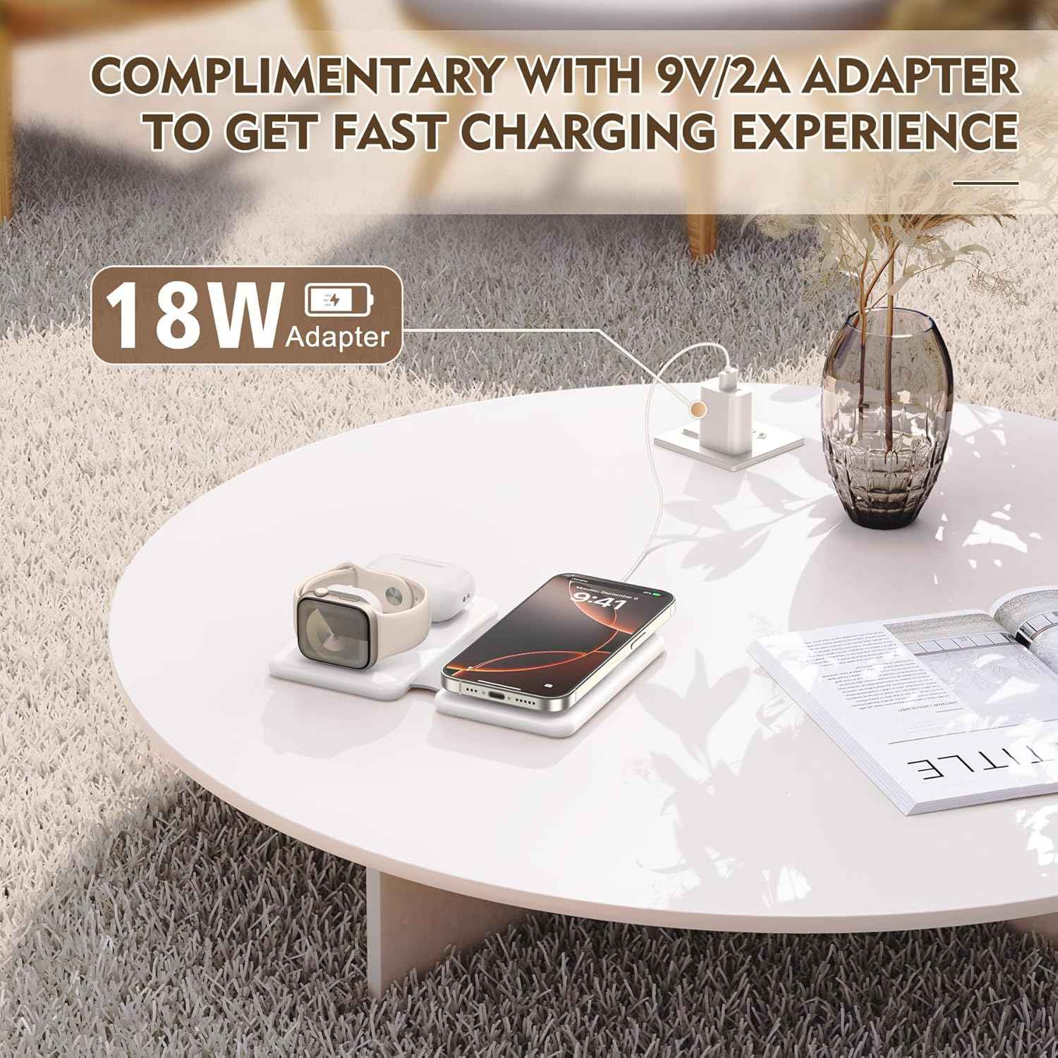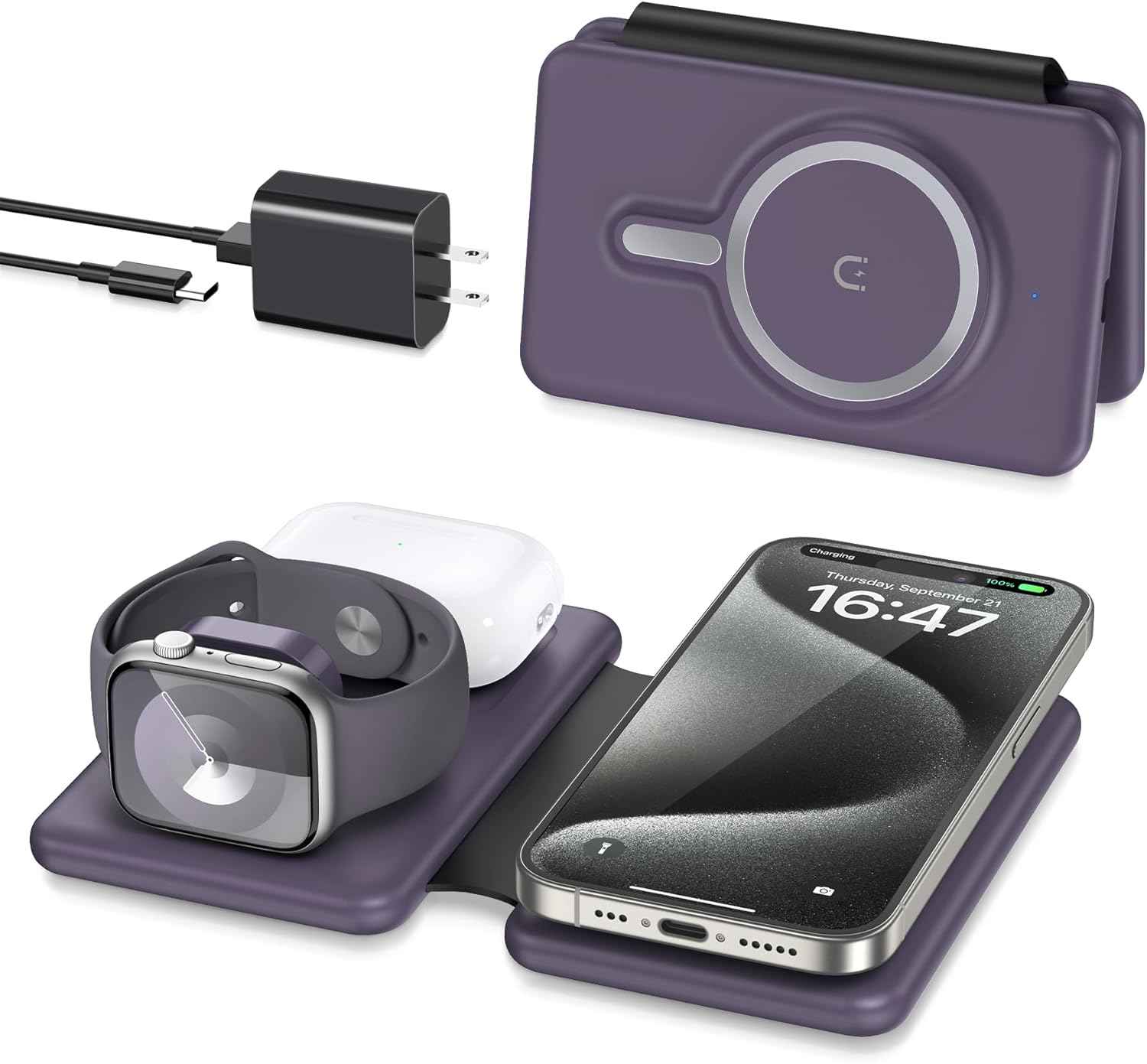 Due to its foldable and compact design, this 3 in 1 charging station is a must-have for travel.