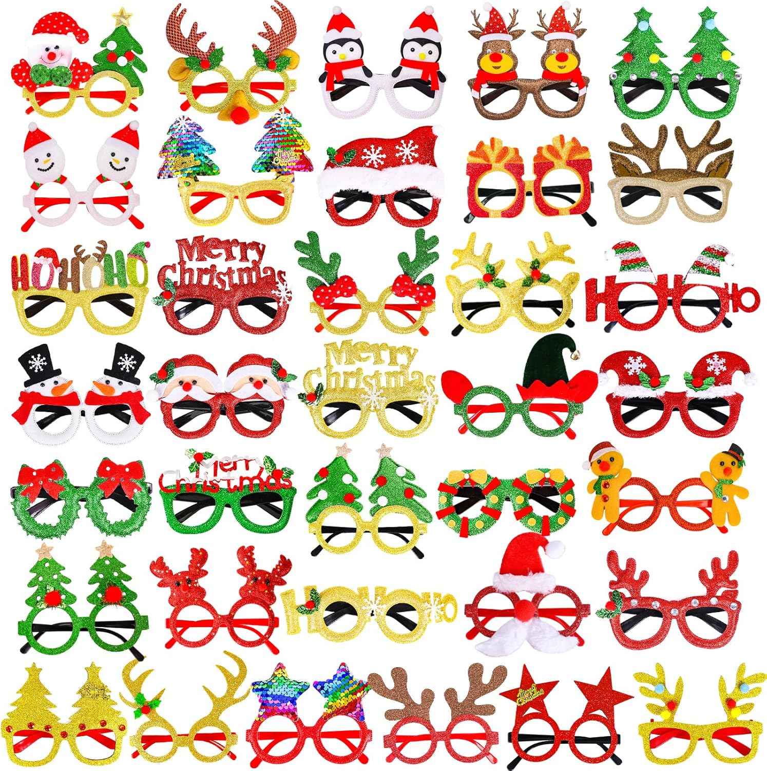 - Max Fun 36 Pack Christmas Glitter Glasses, Holiday Eyeglasses Party Frames for Christmas Party Favors & Holiday Celebration Decorations, One Size Fits All