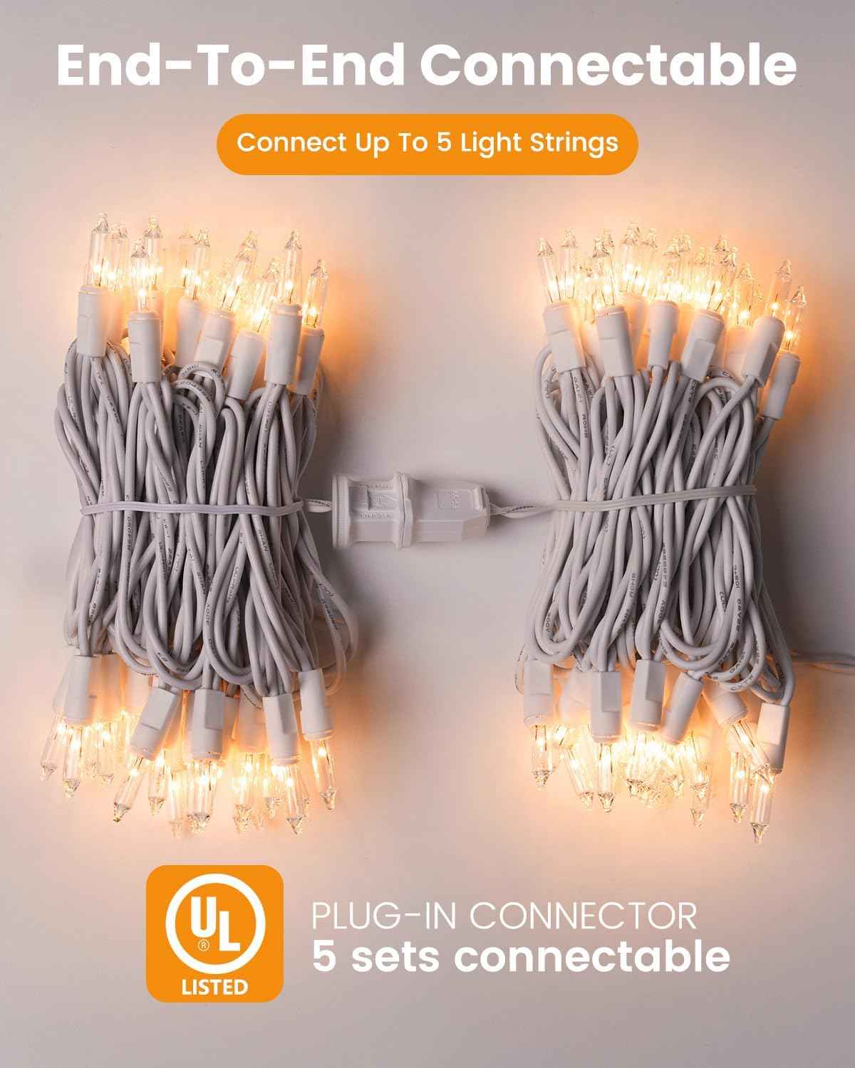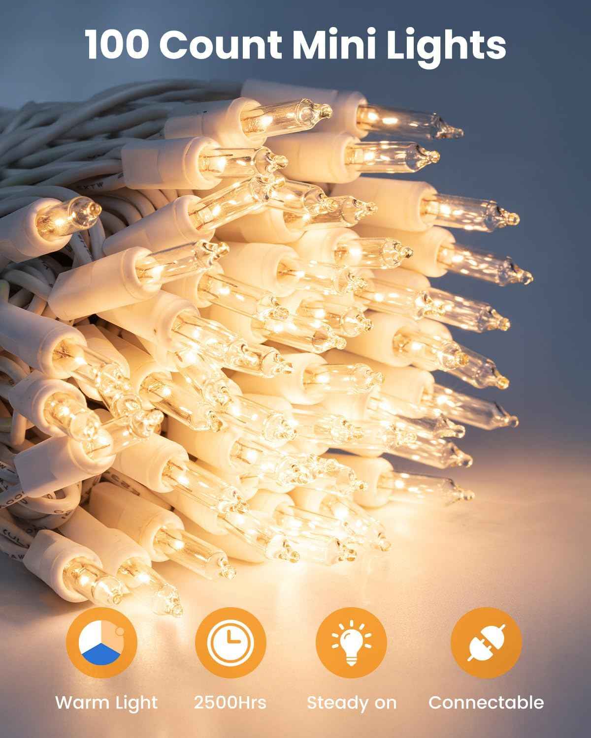 Minetom Clear Christmas Lights Set 100 Count 25 Feet Incandescent Bulb Mini String Lights for Indoor Christmas Tree Garland Birthday Wedding Party Festival Decoration, White Wire