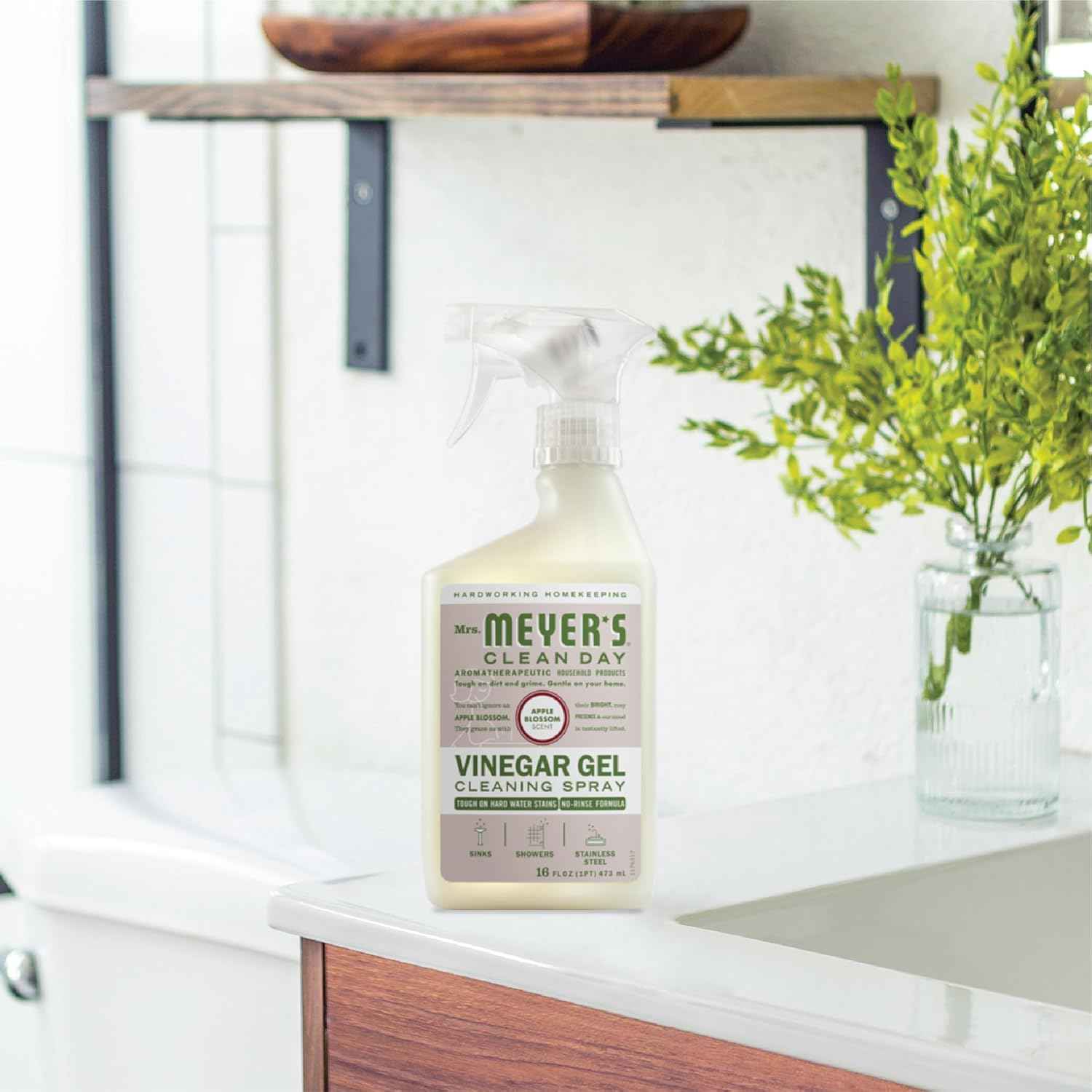 - MRS. MEYER'S CLEAN DAY Vinegar Gel Cleaning Spray, Bathroom Use, No-Rinse Formula, Apple Blossom, 16 Fl Oz, Pack of 1