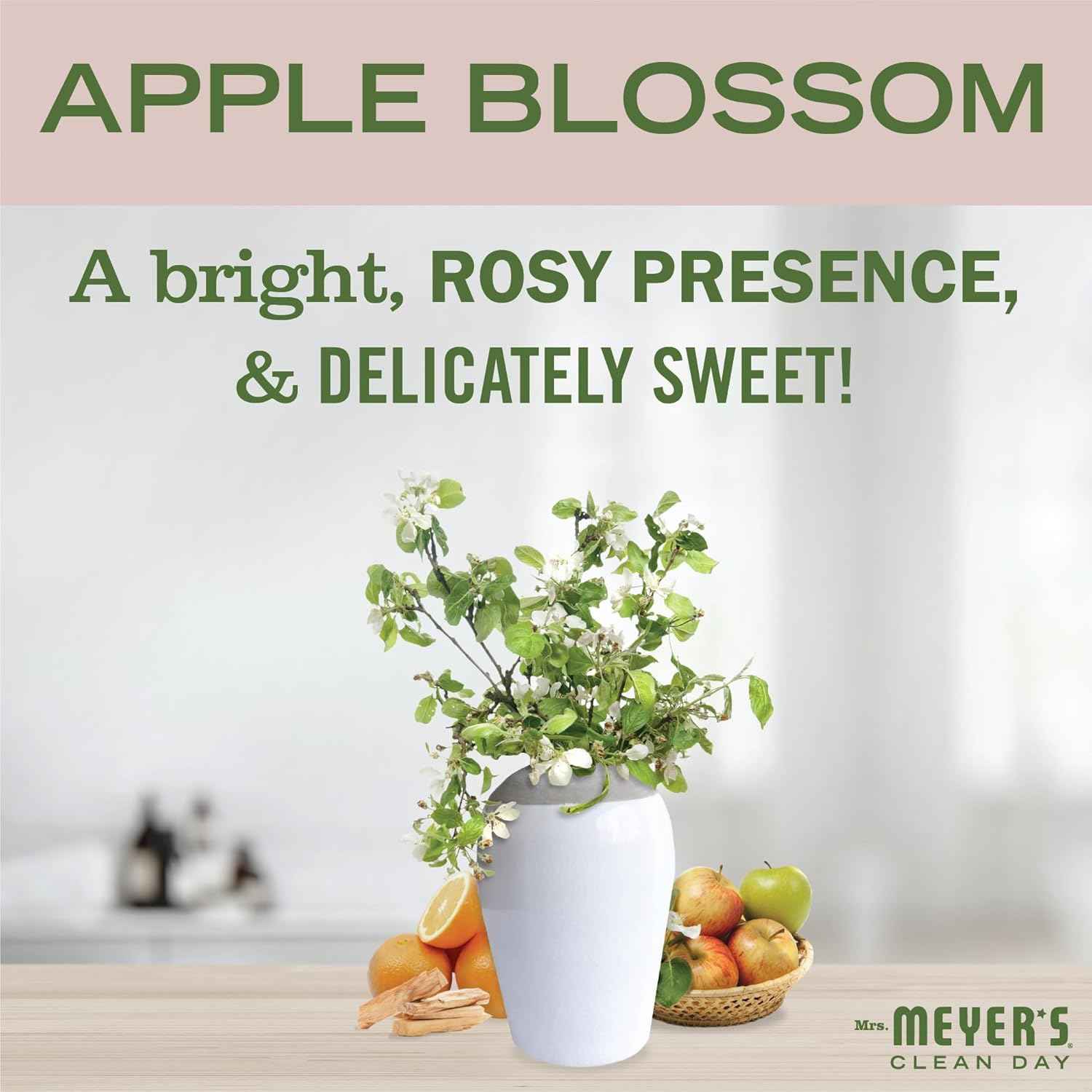 Mrs. Meyer's Clean Day Vinegar Gel Cleaning Spray features a plant-derived, thickened vinegar—with our bright Apple Blossom scent —that cleans without needing to rinse. For cleaning sinks, showers, stainless steel, and all those other little do-it-yourself vinegar jobs, only much more pleasant! Try it and we're sure you'll love it as much as we do!