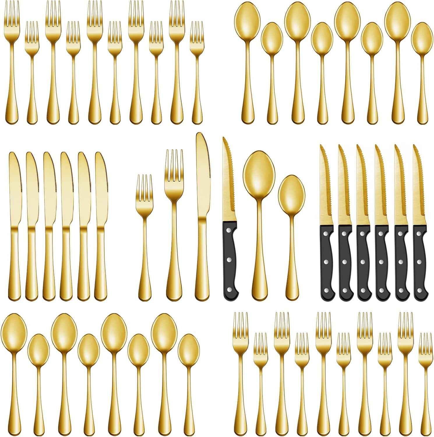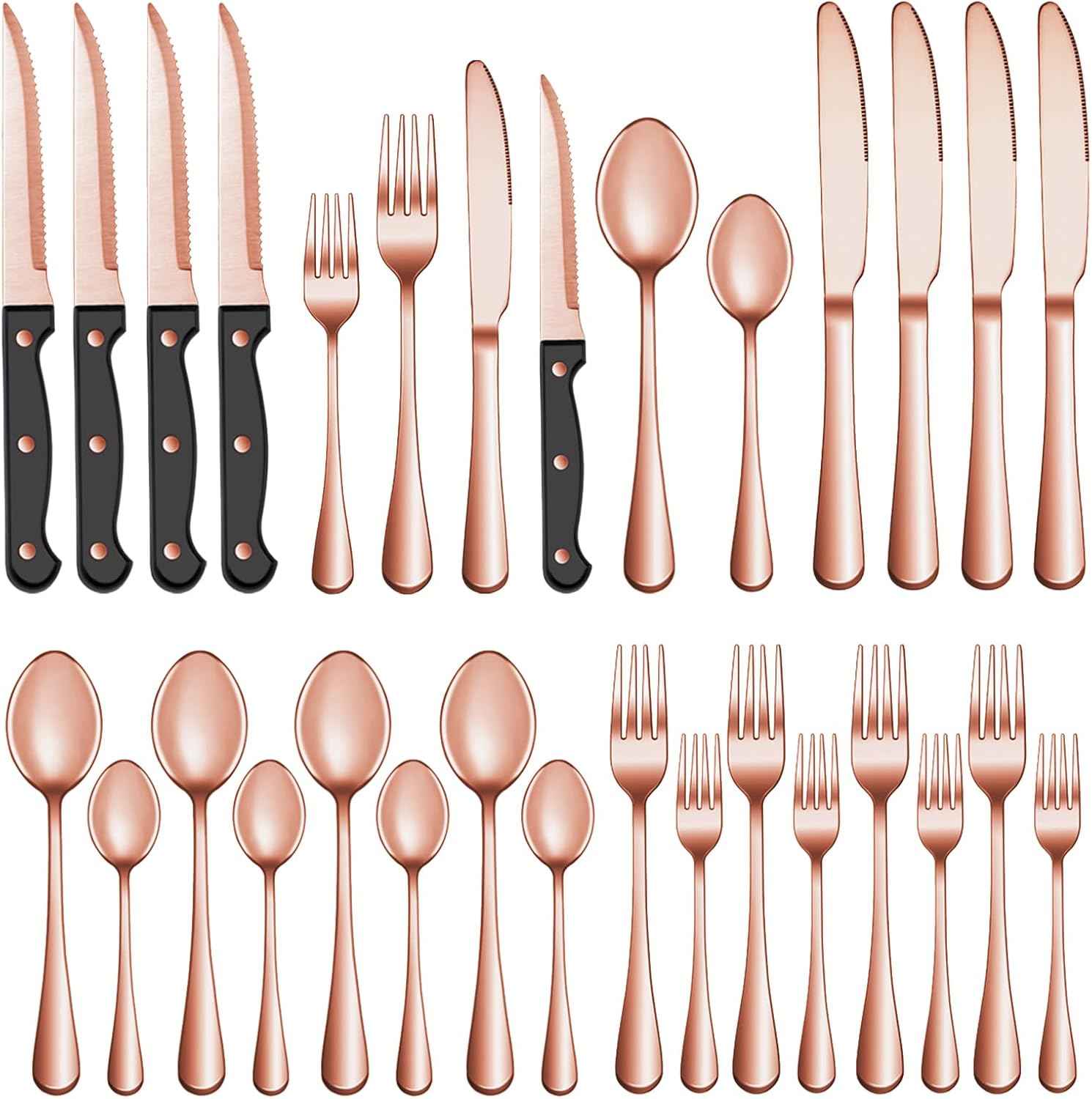 MUTNITT Silverware Set with Steak Knives Service for 4,Stainless Steel Flatware, Mirror Polished Cutlery Utensil Set for Home Kitchen Eating Tableware, Include Fork Knife Spoon, Dishwasher Safe