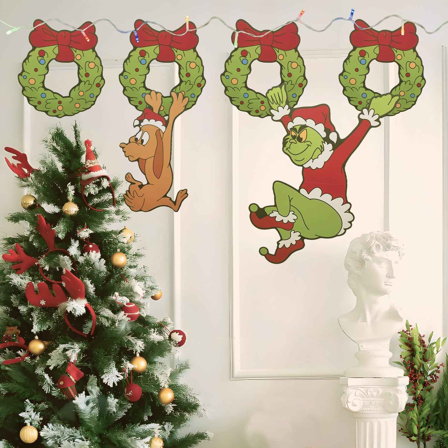 Outdoor Christmas Fence Decorations, 6Pcs Light Up Christmas Fence Peeker Signs Decor with LED String Lights for Yard Garden Lawn Fireplace, Tree Decoration