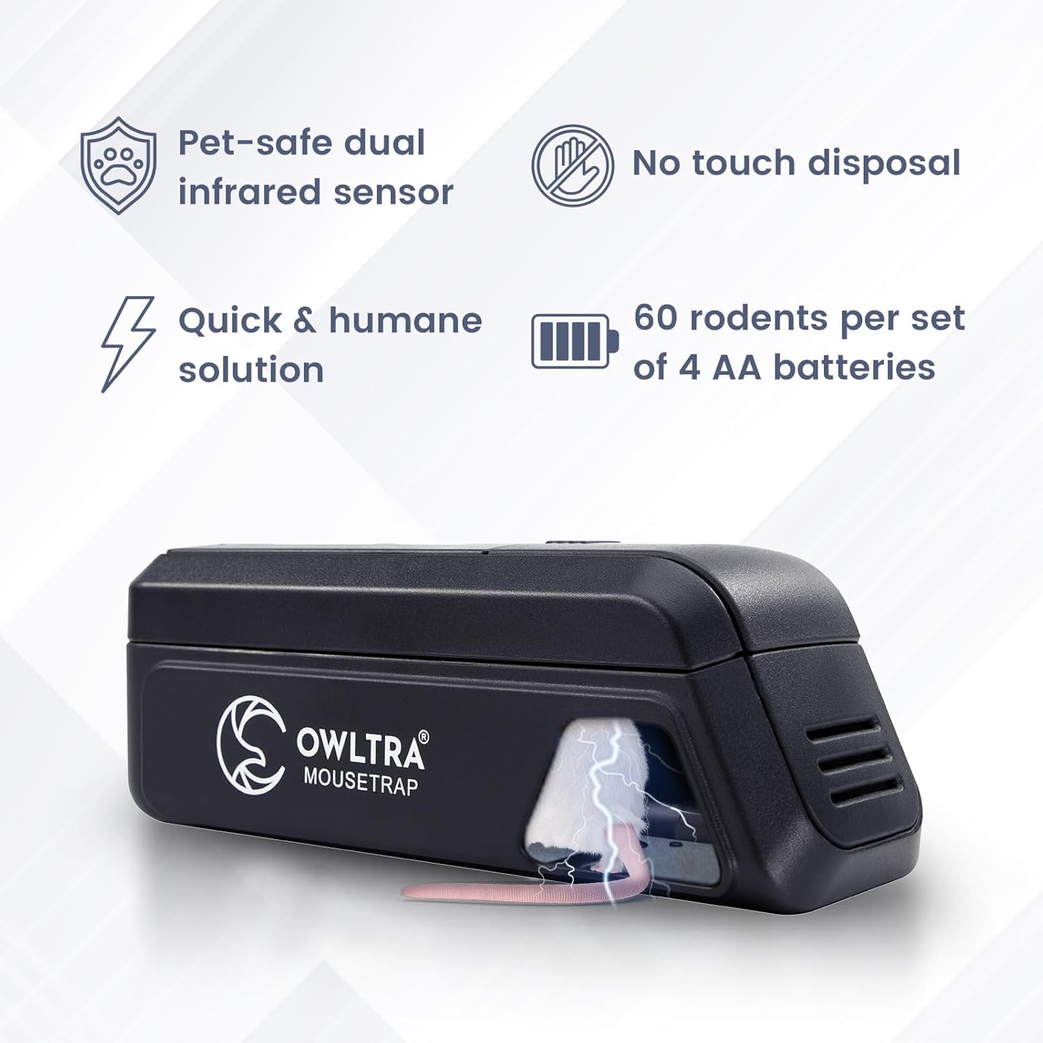 OW-2 Indoor Electric Mouse Trap 2 PCS, Instant Kill Rodent Zapper with Pet Safe Trigger, Black