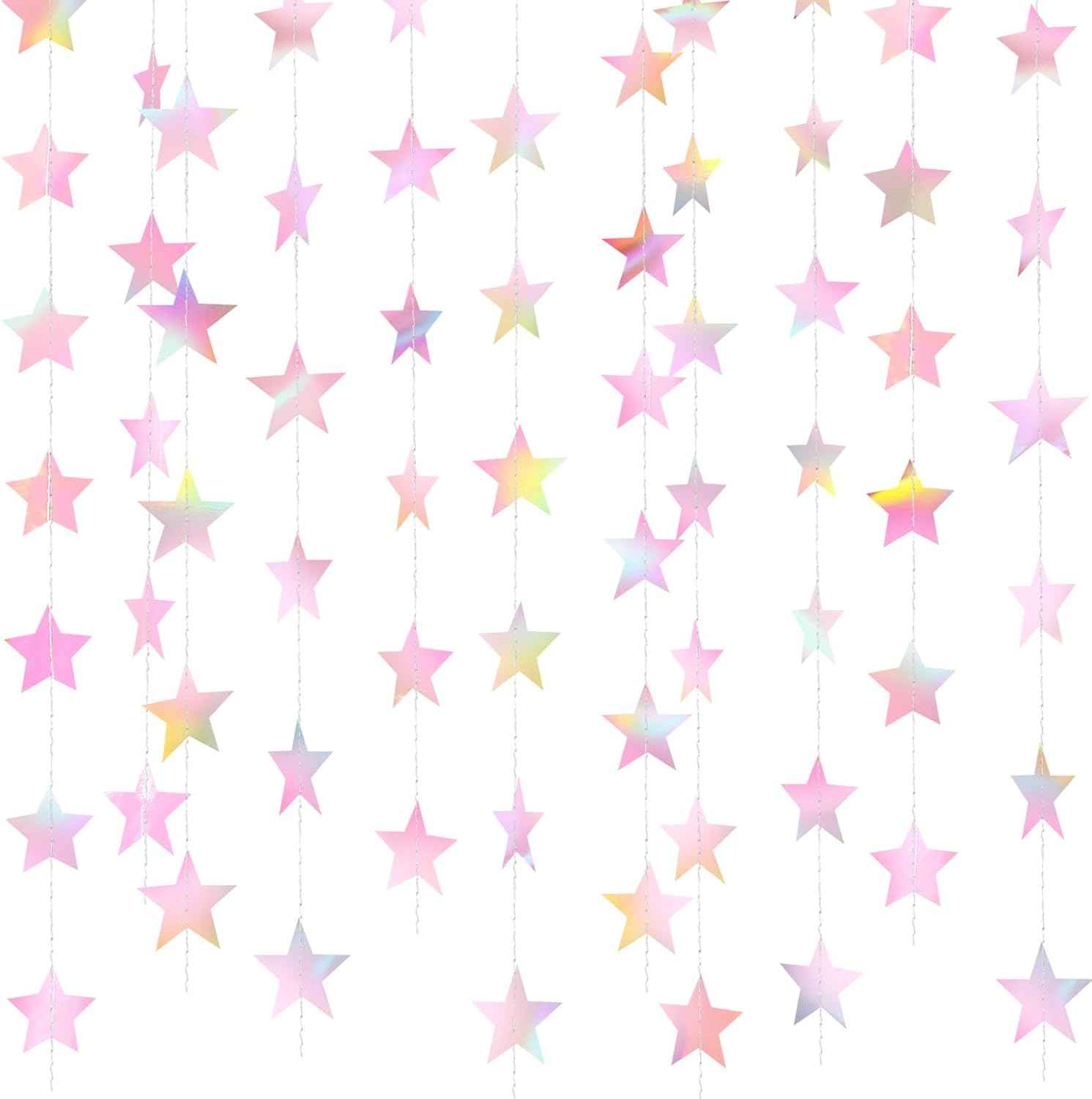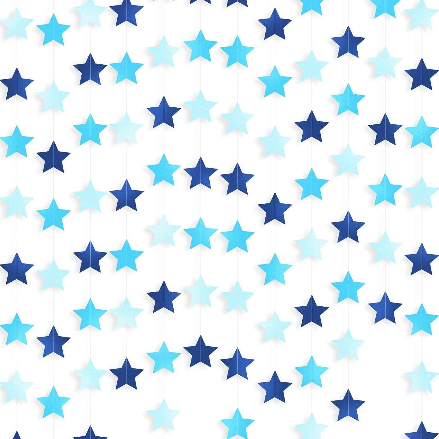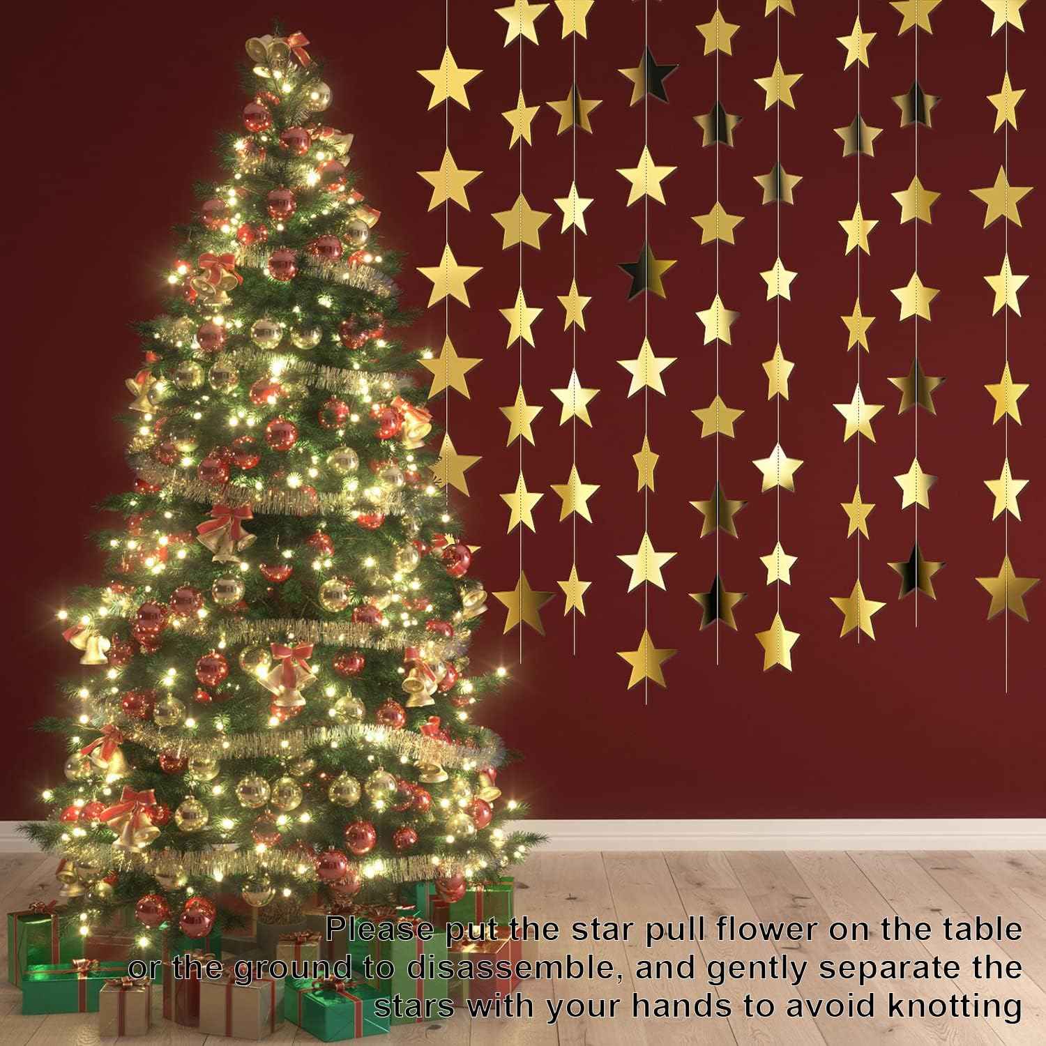 Each garland is 13 feet/ 4 meters long, total length is 130 feet/ 40 meters. Each size of paper star is 2.75 inch/ 7 cm.