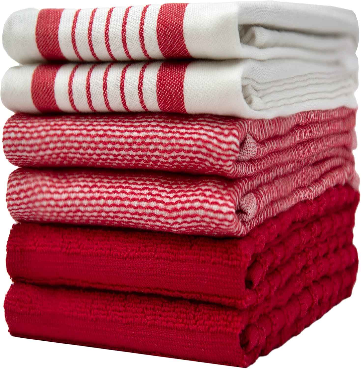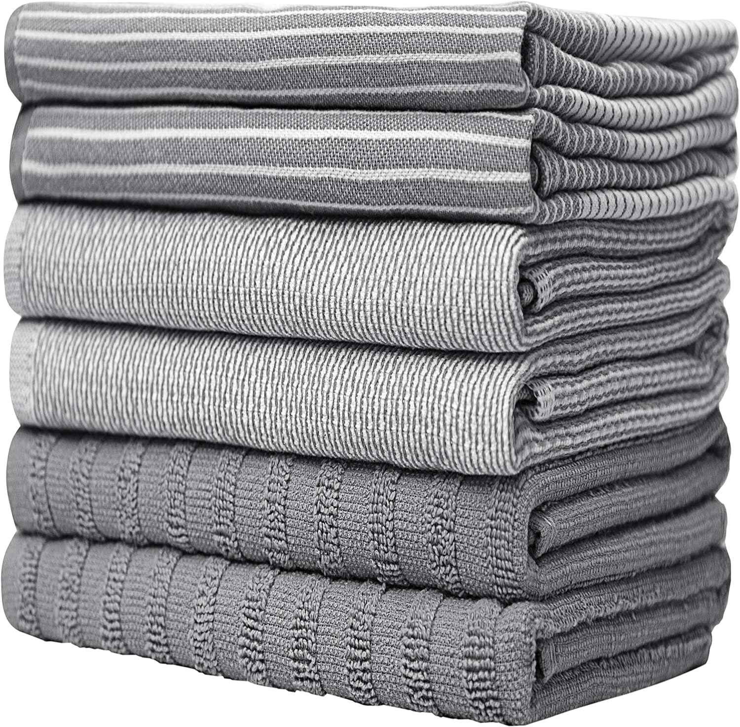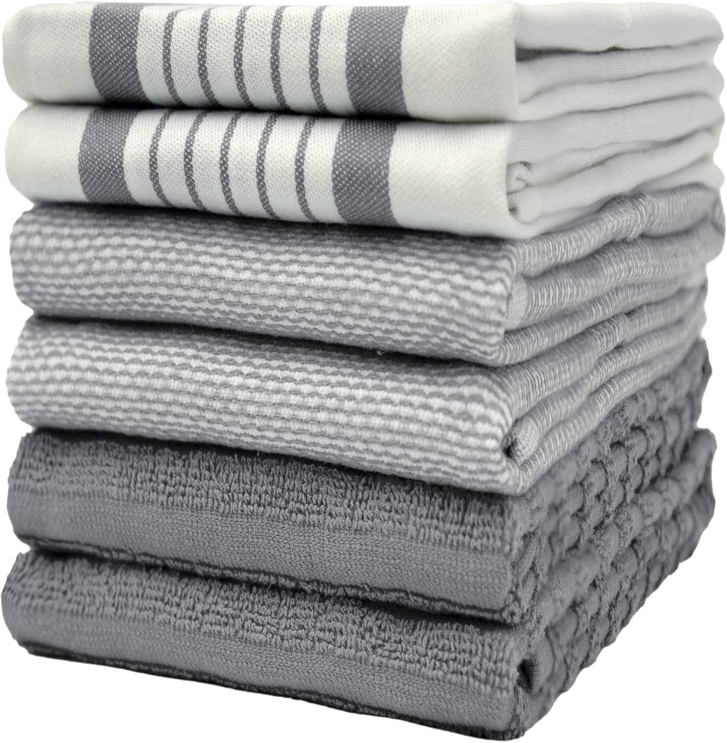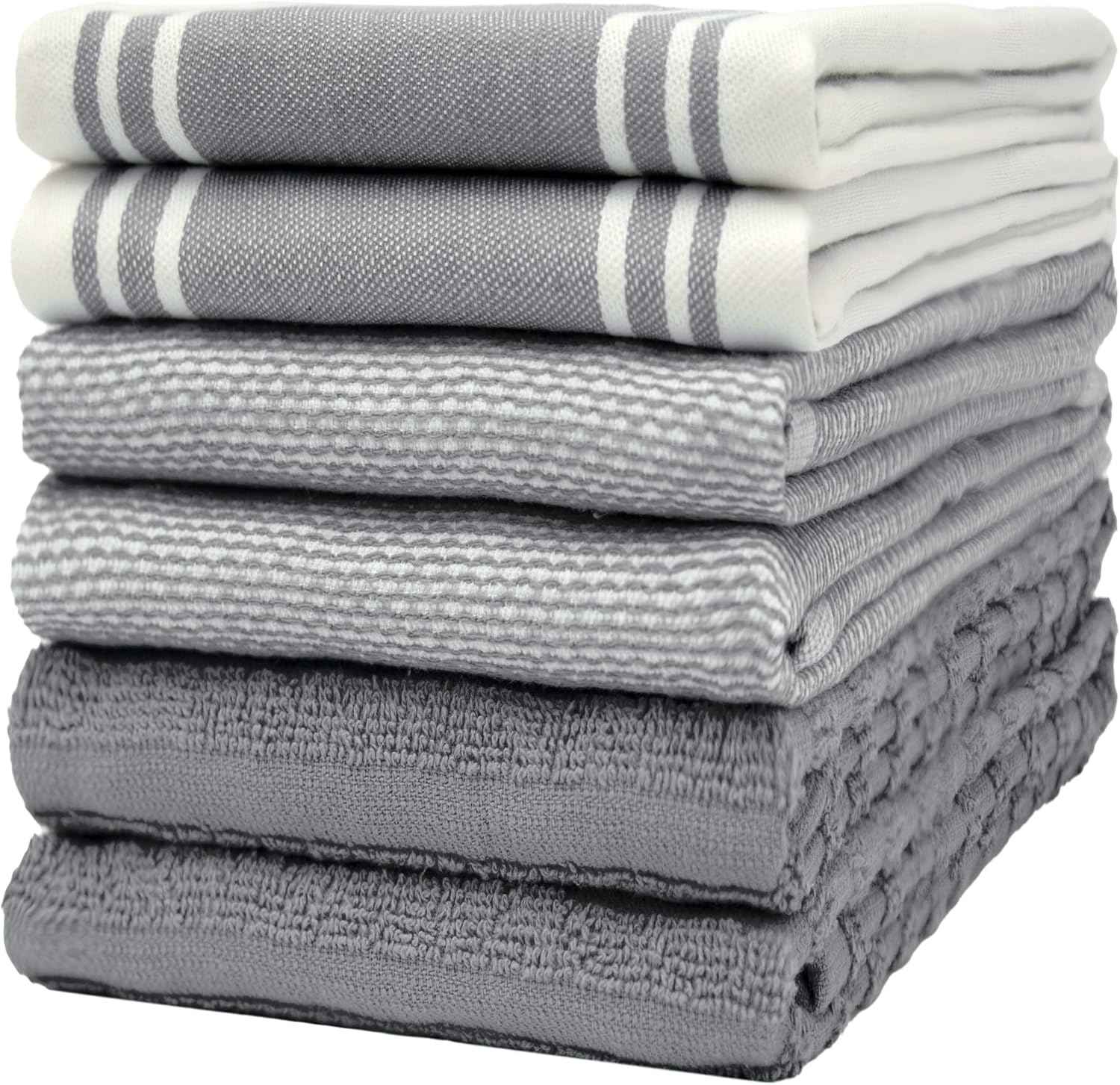 Premium Kitchen Towels (20”x 28”, 6 Pack) | Large Cotton Kitchen Hand Towel | Flat & Terry Dish Cloths | Highly Absorbent Tea Towels Set with Hanging Loop | Gray